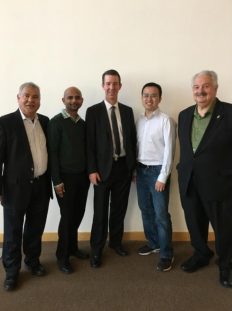 Pictured: Suman Kalia, assistant professor of Data Science, Niraj Patel, Timothy Dineen, Alan Leung, Albero LaCava, professor and chair, Department of Computer & Information Sciences and faculty member of the Cybersecurity Center.