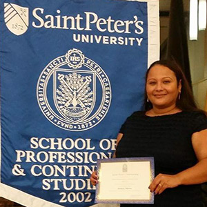 After obtaining my G.E.D. in 1999, I put my education on hold to raise my four children. My first experience with Saint Peter’s was in the summer of 2009 when I enrolled my then 10 year old son in the Four R Program, a summer program designed to help young children improve academically. We were so impressed my older son decided to apply and was accepted to Saint Peter’s in 2012. After watching my son Alex’s amazing experience here, I was inspired to enroll in the Public Policy Program. Although I hadn’t been in a classroom setting for years, my fears were put at ease on the very first day. The professors were very encouraging and supported me with all the tools I needed to succeed.