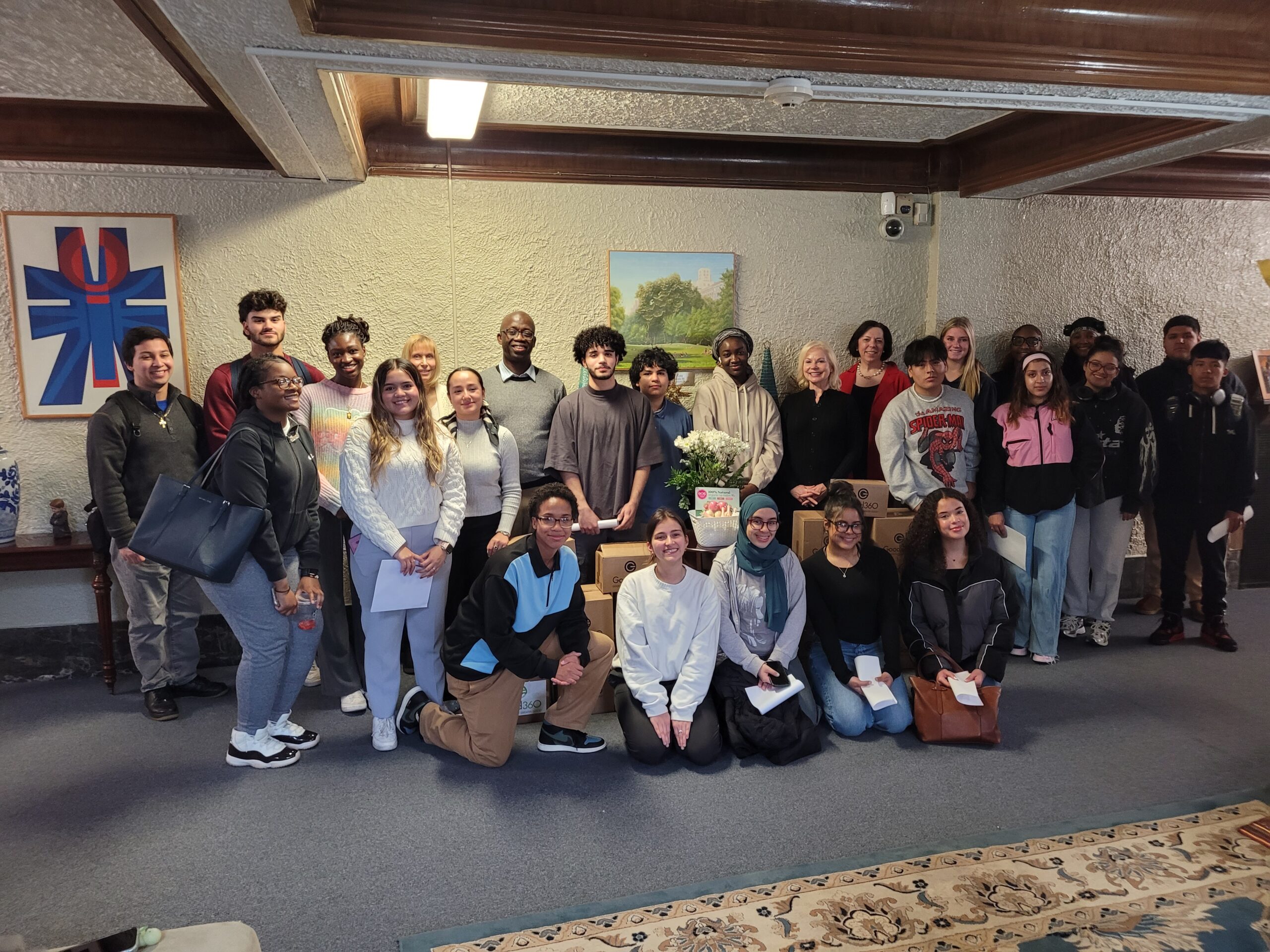 On Monday, December 9, 2024, the students from the Dr. Karl Alorbi’s Honors Principles of Management course and from Dr. Beth Adubato’s first-year Ignatian Seminar “Walking the Walk,” donated dry goods totaling $15,000 to the LINDA organization. Throughout the semester, both courses worked to raise money and collect donations in order to present the organization with this substantial gift ahead of the holiday season.