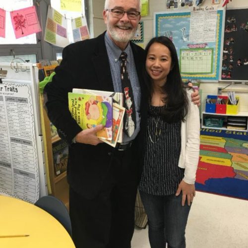On Thursday, April 12, James Clayton, Ed.D., associate professor in the Caulfield School of Education, visited Lakeview School in Denville, N.J. to read to students as part of D.E.A.R. (Drop Everything And Read) Day. The photo shows Dr. Clayton and Mrs. Huong Tran, a second grade teacher.