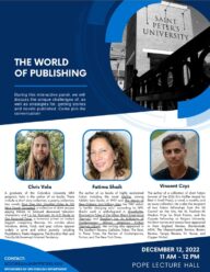 On December 12, 2022, authors Chris Vola, Fatima Shaik, and Vincent Czyzthis held an interactive panel, wherein they discussed the unique challenges of, as well as strategies for, getting stories and novels published.