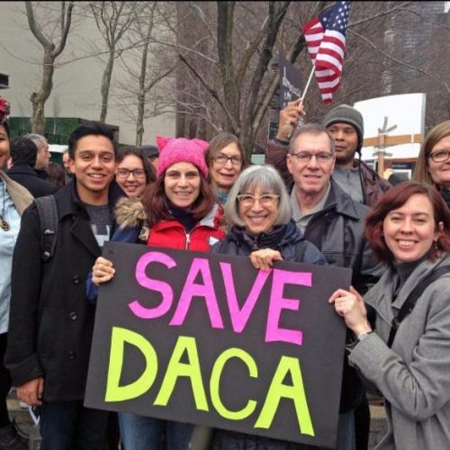 Saint Peter’s University students, faculty, staff and alumni participated in the historic Women’s March on January 21, both in Washington, D.C. and in New York City. Pictured are those who participated in the New York City March. They held a sign that read, “Save DACA,” (Deferred Action for Childhood Arrivals).