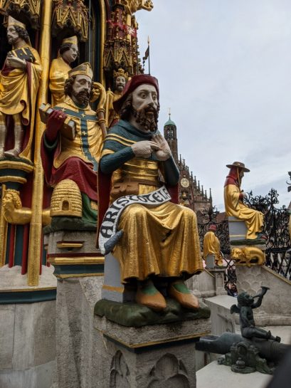 - This fellow looks familiar! Is that Professor Murphy? No, it’s Aristotle! This photo was taken at the beautiful 14th century Schöner Brunnen fountain in Nuremberg.