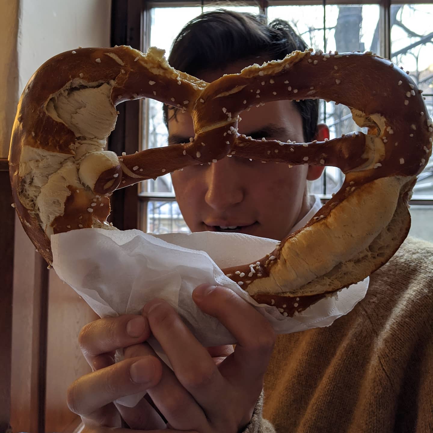 - Hunter Criollo ’20 enjoying a very large and very yummy Bavarian pretzel!