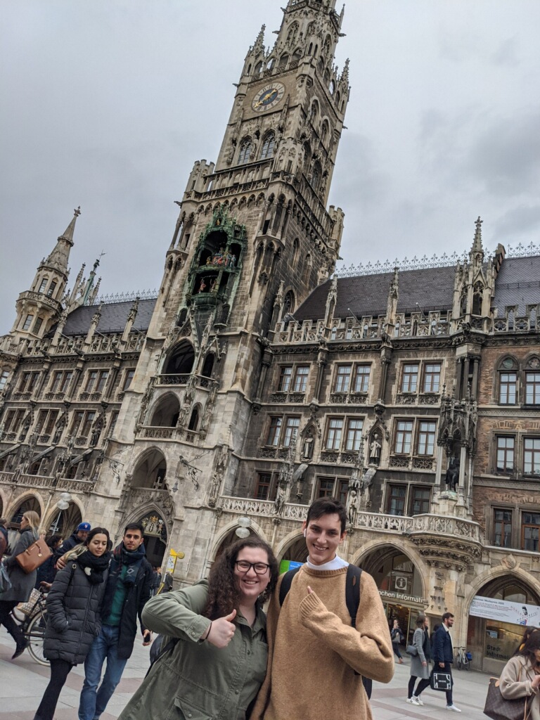 - Philosophy students Nicole Font and Hunter Criollo, both Class of 2020, pose in Marienplatz, Munich, Germany. Photo: Nicole Font ’20