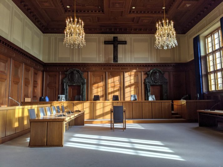 - Students visited the courts in Nuremberg, Germany, where the military tribunals were held in 1945, which held top Nazi officials responsible for war crimes. Photo: Nicole Font ’20