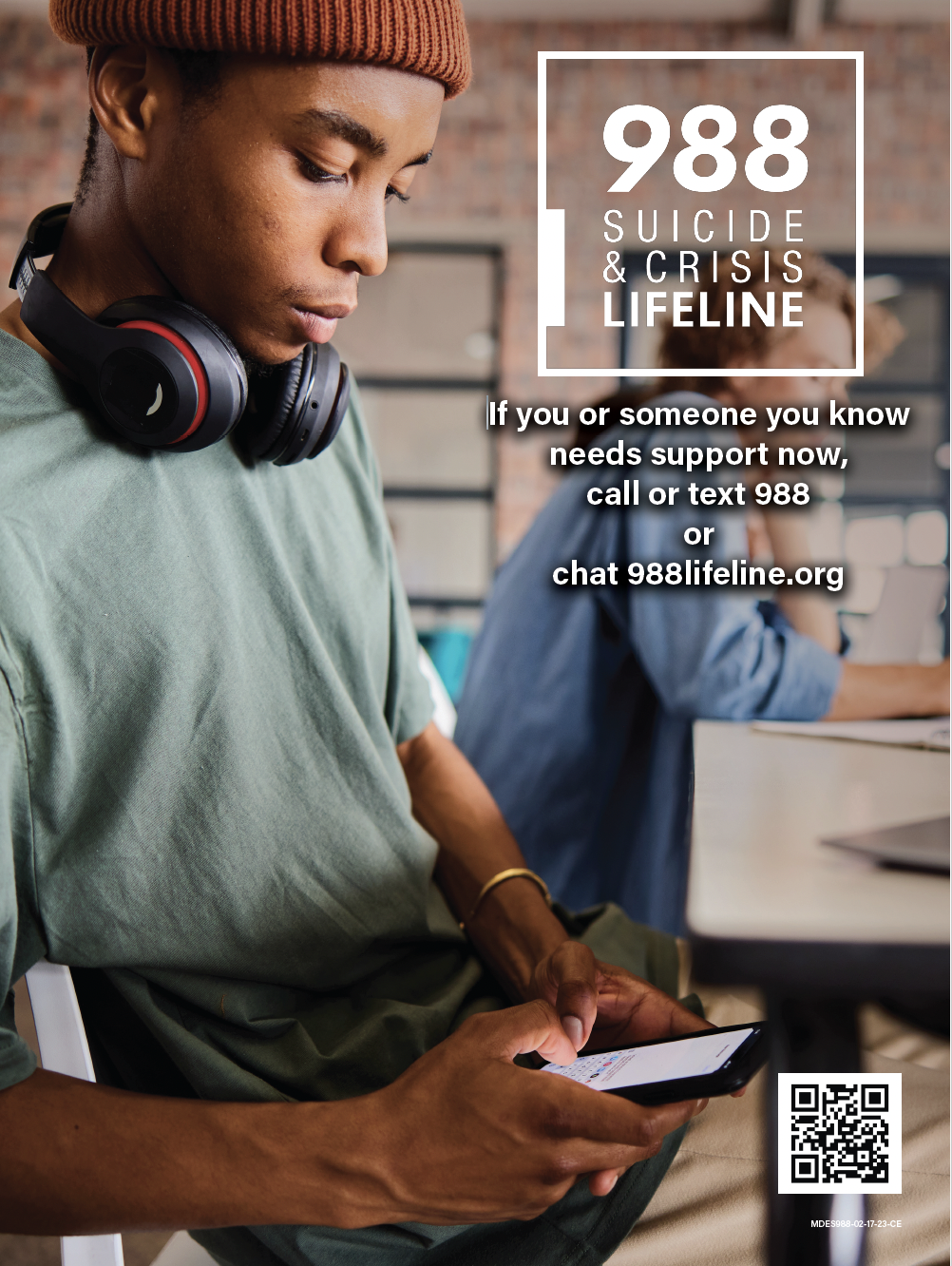 Suicide & Crisis Lifeline have trained counselors available 24/7/365  available to anyone in suicidal crisis or emotional distress.