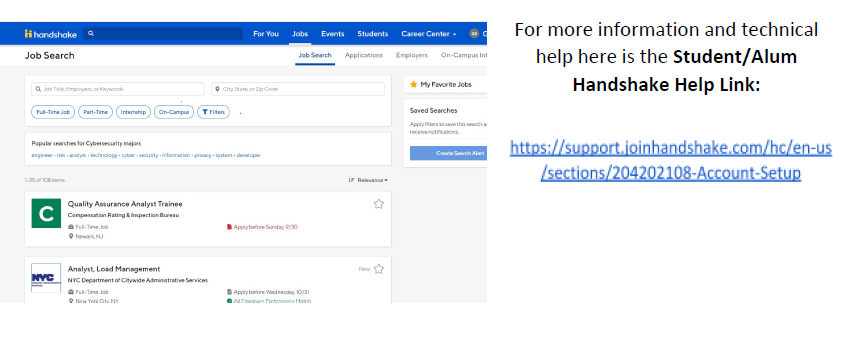 For more information and technical help here is the Student/Alum Handshake Help Link: