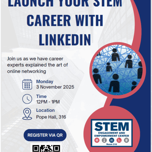 This interactive workshop will help students to create or tailor their existing professional profile through the LinkedIn platform. In partnership with the Center for Career Engagement and Experiential Learning (CEEL) students can learn how to effectively promote themselves and will be provided with expertise on what employers are seeking. November 3, 2025 12:00-1:00pm View event […]