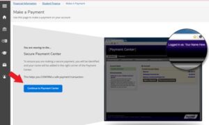 - Click on Continue to Payment Center to access your Student Payment Center