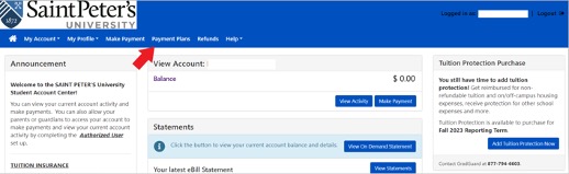 - Log into the Student Payment Center