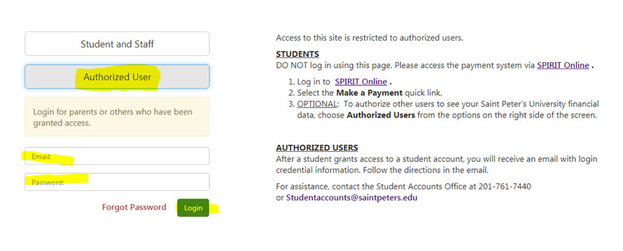 - After set up, all authorized users making tuition payments on your behalf will access the system directly through the dedicated Authorized User access