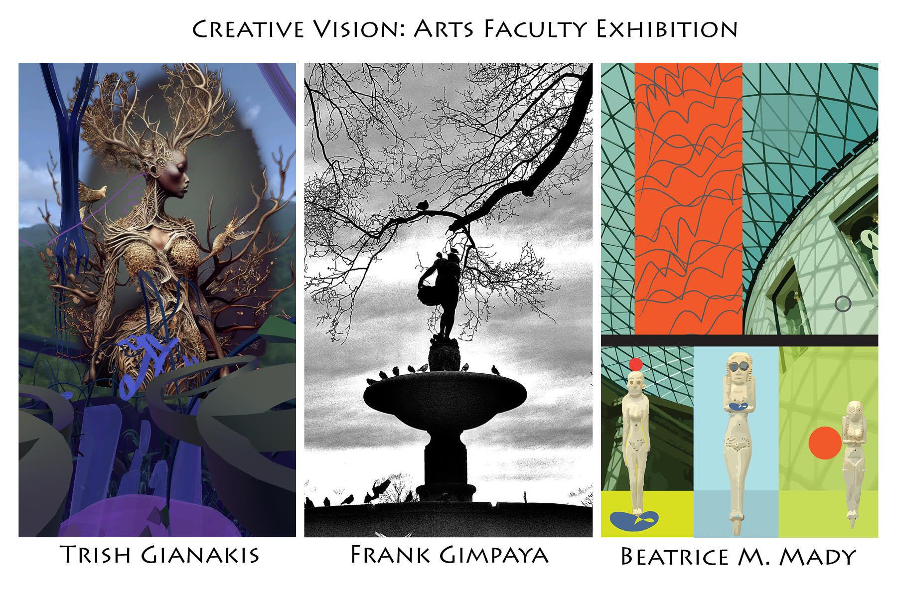 The Fine Arts Gallery is pleased to present “Creative Vision: Arts Faculty Exhibition” featuring the work of Trish Gianakis, Frank Gimpaya, and Beatrice M. Mady.