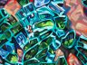 Stephen Cimini creates paintings building on the architectural origins, which have been the basis of his work for over a decade; he started referring the compositions as random symmetry. That is, creating a balance on the canvas with no discernible pattern allowing a symmetrical, meditative composition to emerge. He employs the golden mean as a reference which can often be seen in the composition. Color remains a constantly