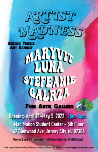 Artist Madness/Peacock Creative Network: Senior Thesis exhibition showcases two of Saint Peter’s University’s finest 2022 Graphic Arts Seniors. The works exhibited are created in computer programs and natural media.