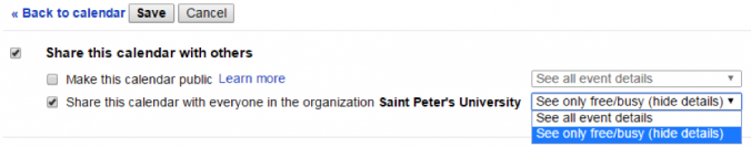 If you do not want to share the same information with the entire organization, untick the box that says “Share this Calendar with Others”.