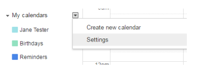 - Click the arrow to the right of “My Calendars” and click “Settings”