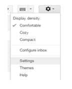 - Once logged in, in the upper right corner of your Gmail inbox, there is an icon that looks like a wheel. Click this, and select “settings”: