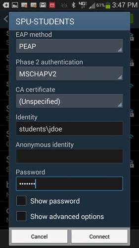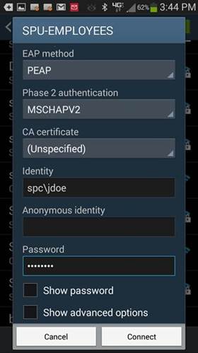 - Go to the Wi-Fi Setting, and select either SPU-EMPLOYEES or SPU-STUDENTS , as it applies to you
