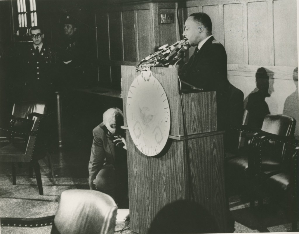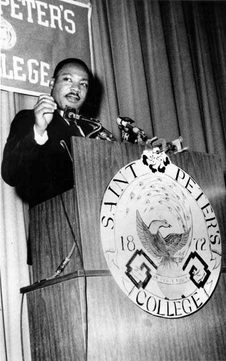 On September 22, 1965, Dr. Martin Luther King Jr. addressed a crowd of approximately 500 people at the Michaelmas Convocation, an annual ceremony that recognizes Saint Peter’s students for outstanding academic achievement. During his visit to the Jersey City campus, Dr. King was awarded an honorary Doctor of Laws and Letters degree, the first offered by a Jesuit college or university.