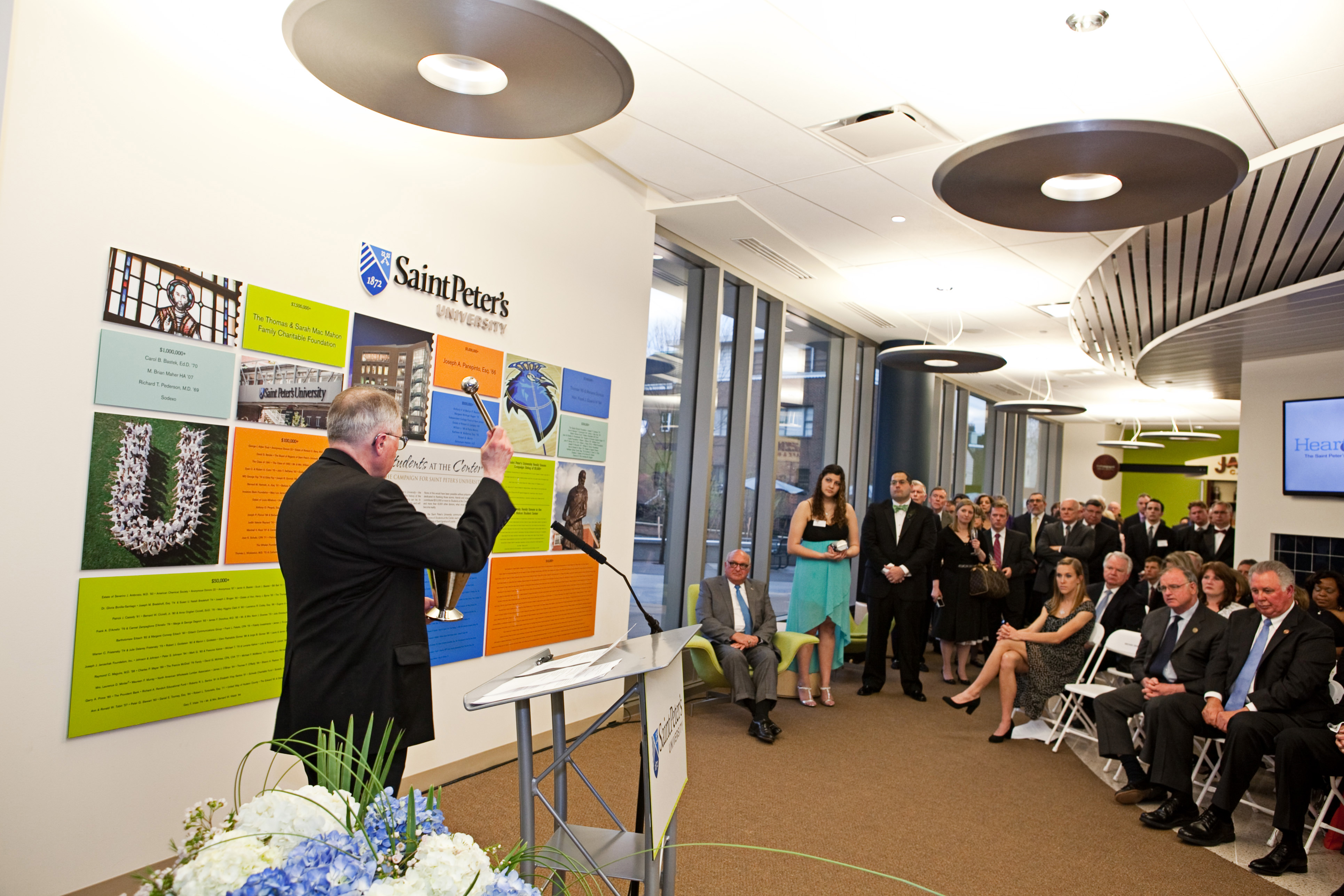 In spring 2013, the Mac Mahon Student Center, named after the alumnus for contributing the largest gift in University history – $7.5 million – opened its doors for the official dedication ceremony and celebration of Hearts & Minds: The Saint Peter’s University Scholarship Dinner.