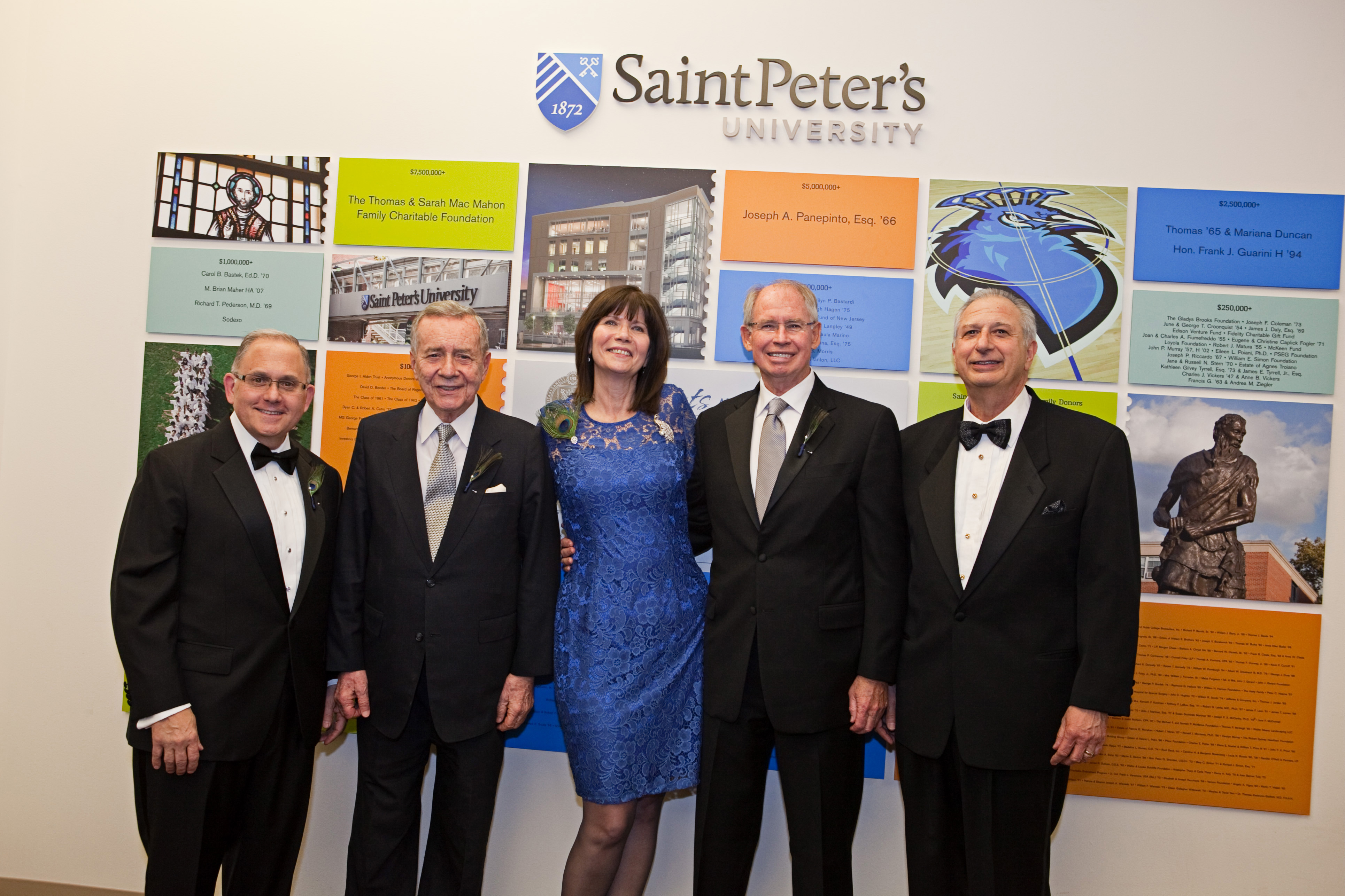 The event served to honor the founders of the Mac Mahon Student Center, alumni and friends of the University who have generously supported the construction of the facility with investments of $500,000 or more. These generous benefactors include Carol B. Bastek, Ed.D. ’70, Thomas W. Duncan ’65, Hon. Frank J. Guarini H ’94, Thomas P. Mac Mahon ’68, M. Brian Maher HA ’07, William J. Marino ’66, Kathleen M. McKenna, Esq. ’75, Robert G. Morris, Joseph A. Panepinto, Esq. ’66 and Sodexo, Inc. In addition to these individuals, more than 8,000 gifts of all sizes were made over several years to Students at the Center: The Campaign for Saint Peter’s University.