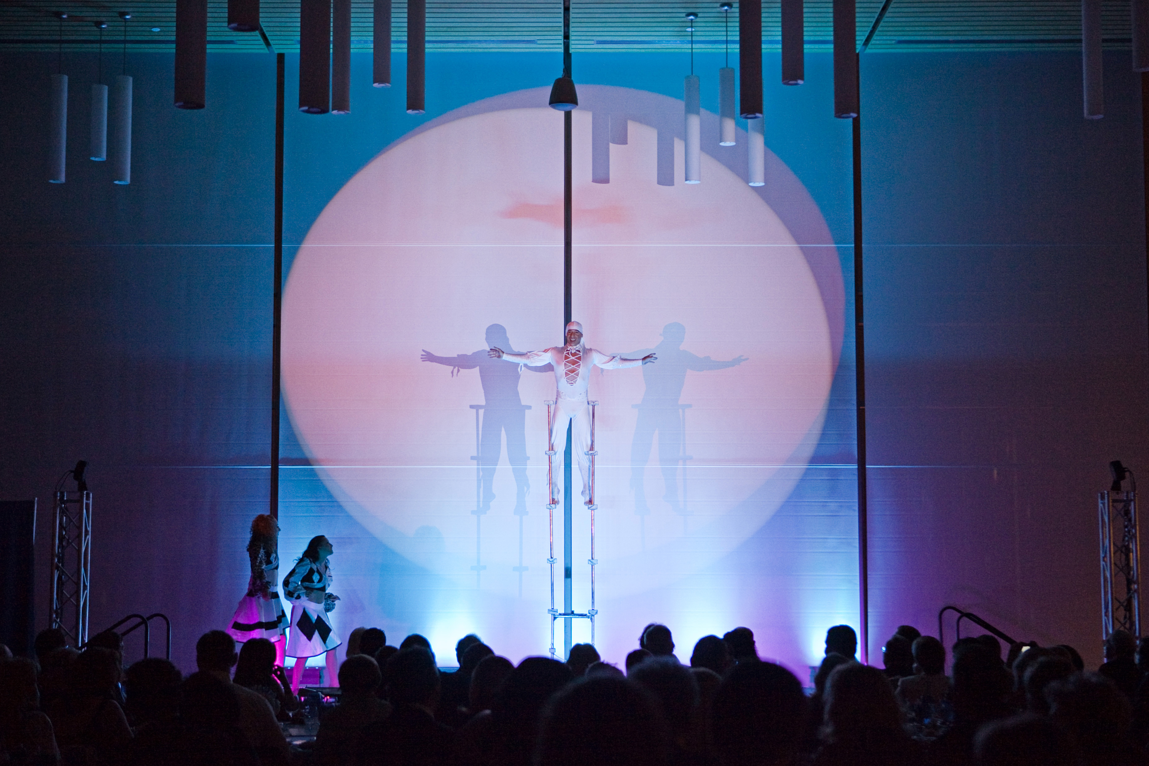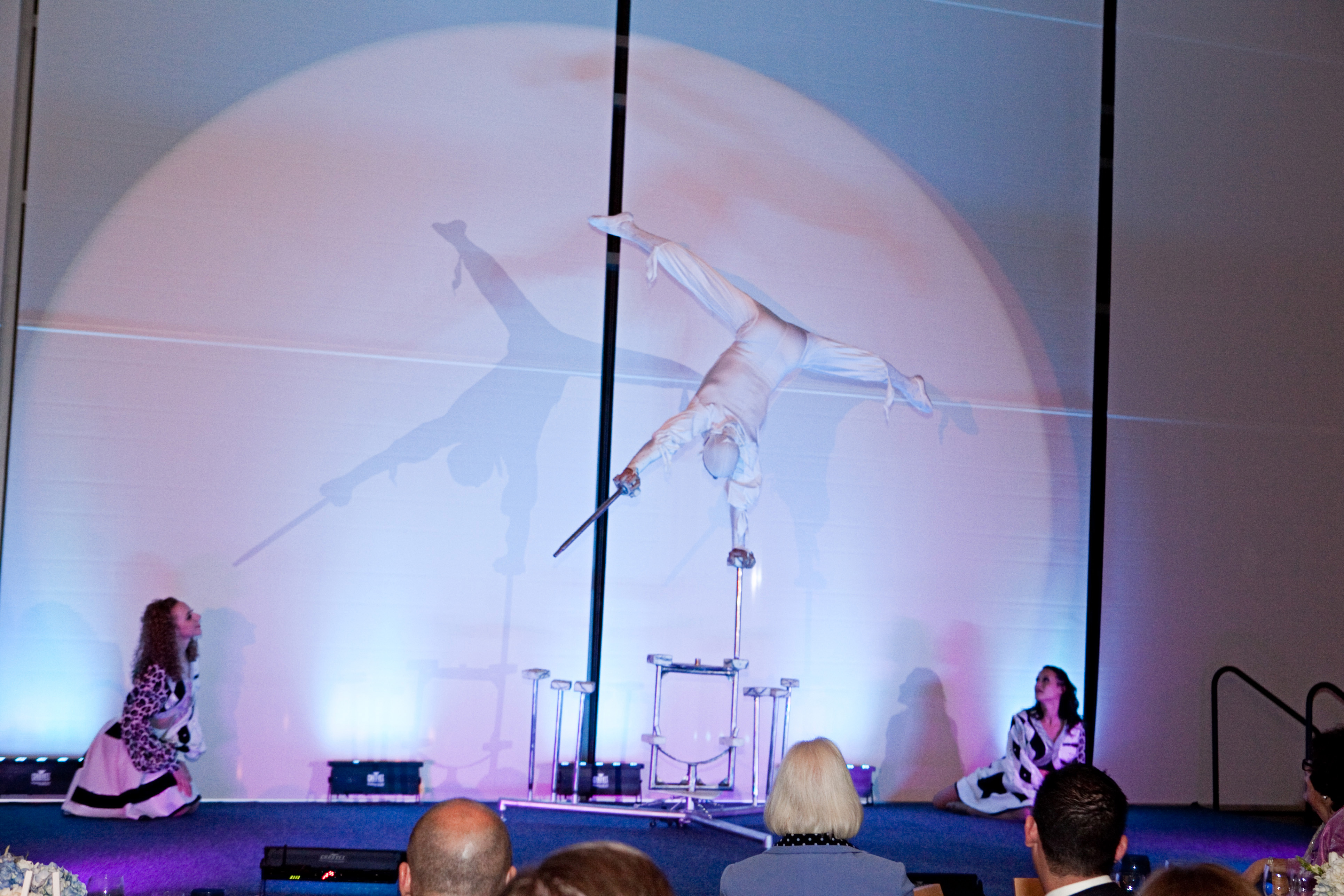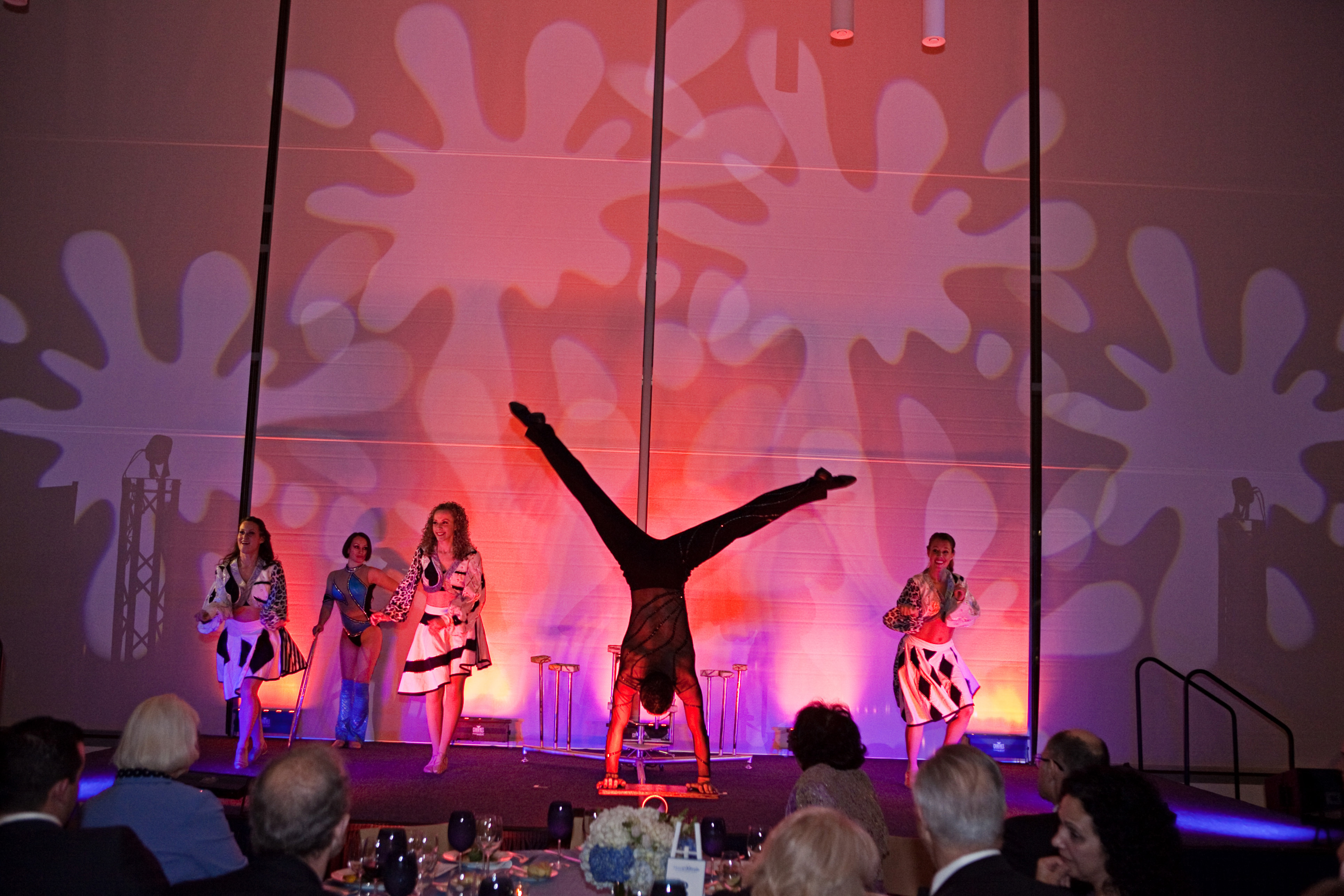 Surrounded by panoramic views of the Jersey City waterfront and New York City skyline, attendees enjoyed dinner, music and a performance by Cirque Le Masque, a team of artists that performed incredible feats of strength, agility, beauty and timing.