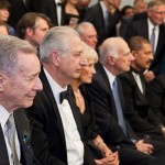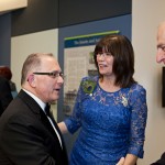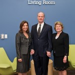 The rainy and cold temperatures on Friday evening could not dampen the spirits of the hundreds of individuals who gathered in The Caroline L. Guarini Living Room in the Mac Mahon Student Center for the official dedication ceremony. After remarks from Dr. Cornacchia, student Renee Bryzski ’13, Jersey City Mayor Jerramiah T. Healy, Congressman Albio ‘Sires ’74 and Mac Mahon, the building was blessed by Rev. Michael L. Braden, S.J., vice president for mission and ministry. Guests then headed up to the third floor of the student center for cocktail hour.