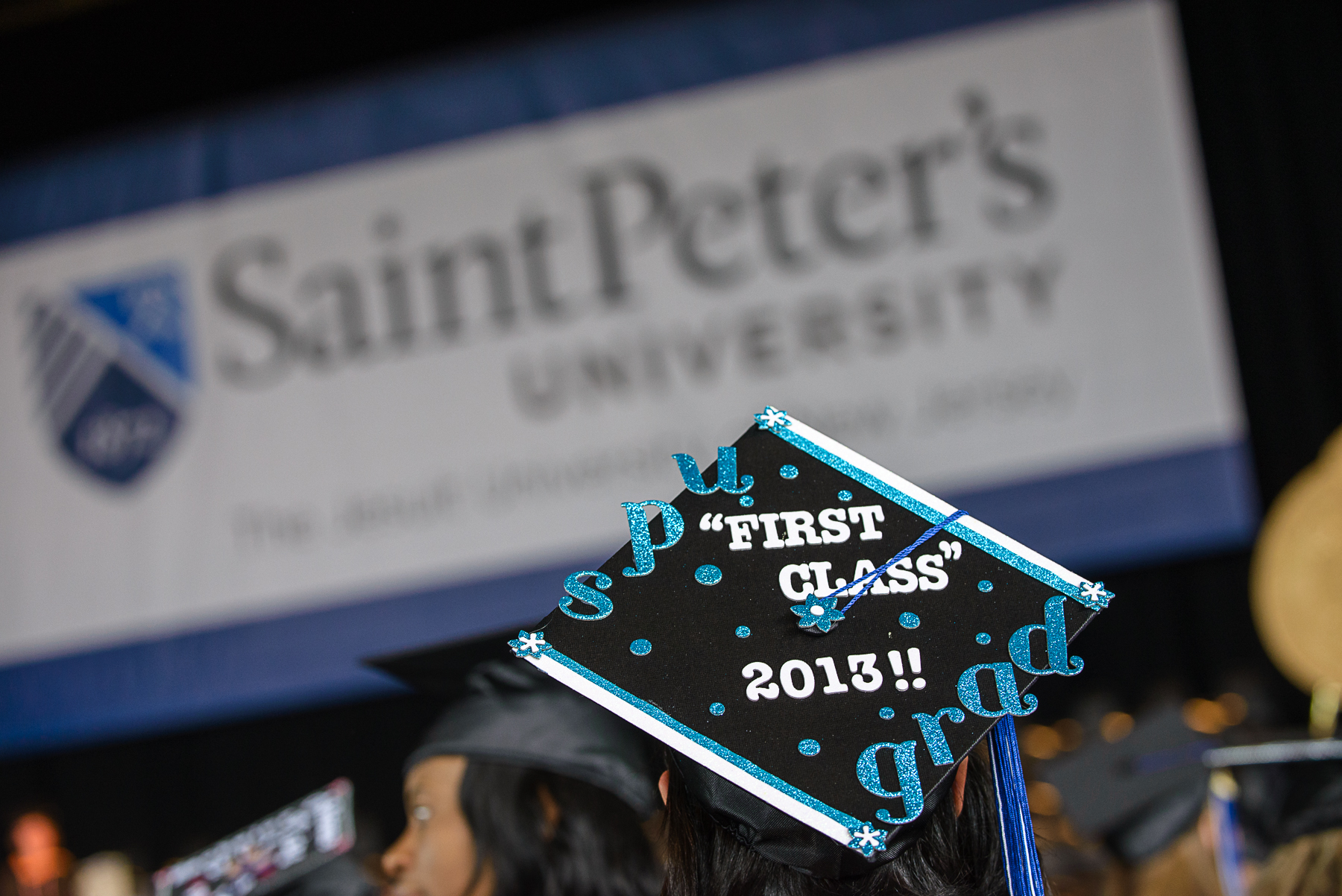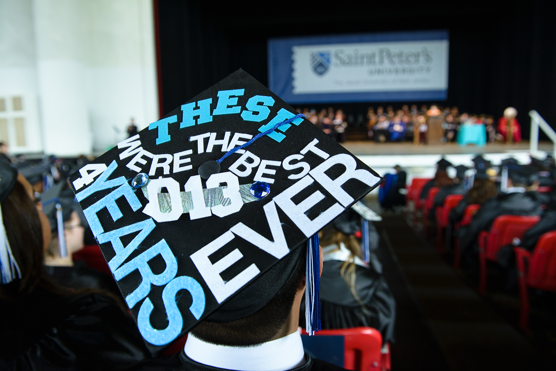 As the graduates made their way across the stage, with their caps decorated with words and images that were personally meaningful, some did dances of excitement while others had tears in their eyes. The celebration of their accomplishments was certainly well-deserved and the wise words spoken at the ceremony served as a reminder of the foundation they built at Saint Peter’s University and as a source of confidence as they “go forth and set the world on fire.”
