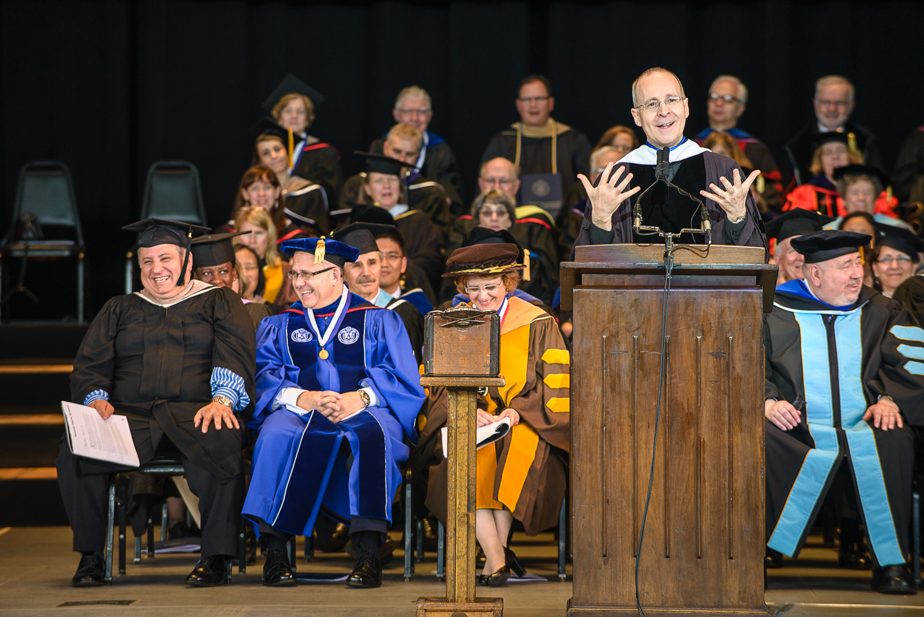 Eugene J. Cornacchia, Ph.D., president of Saint Peter’s University, also addressed the crowd with encouraging words to the graduates. “You now have the tools to build your future on a strong foundation. You will face challenges, but be ready to meet them head on, confident in your own gifts,” he said.