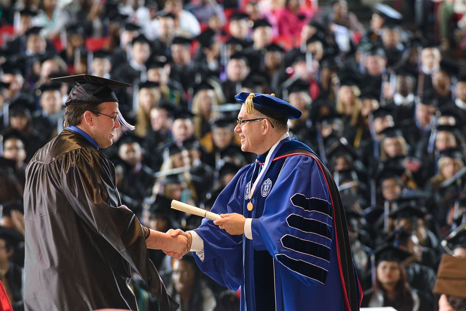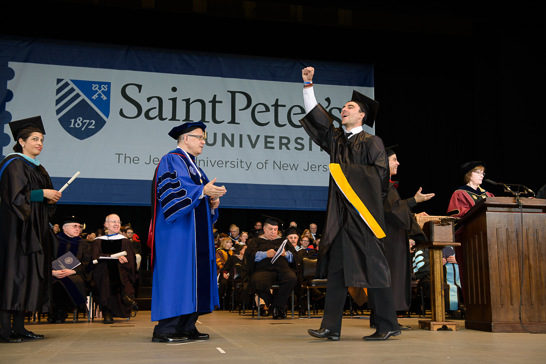 Commencement is a time for celebration and recognition of the academic achievements of a hard-working group of graduates. Saint Peter’s has celebrated 122 commencement ceremonies in its history, graduating more than 30,000 alumni. While each and every ceremony has been a tremendous celebration, the 122nd commencement, which took place on Monday, May 20, truly marked a momentous occasion as it celebrated the first graduating class of Saint Peter’s University.