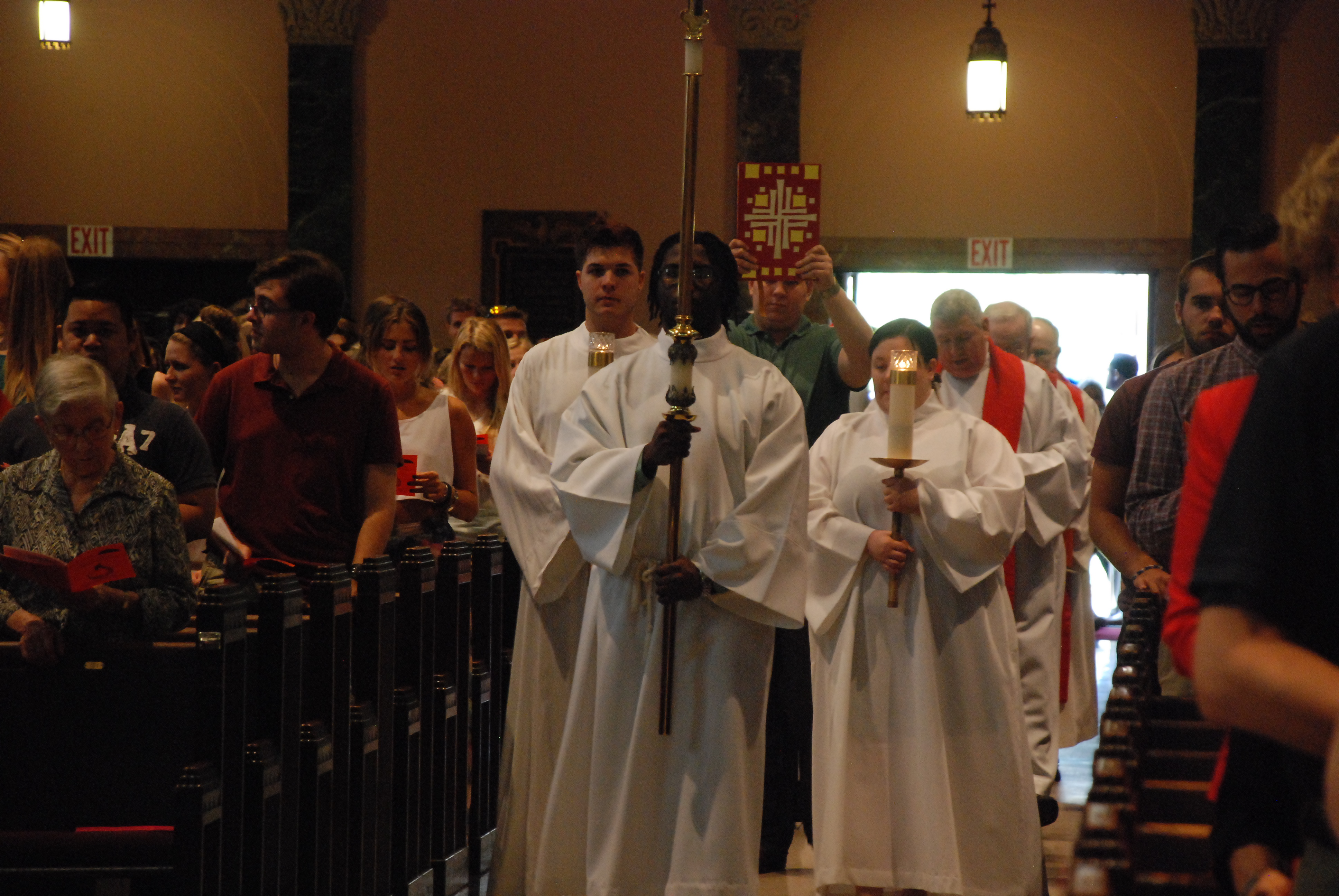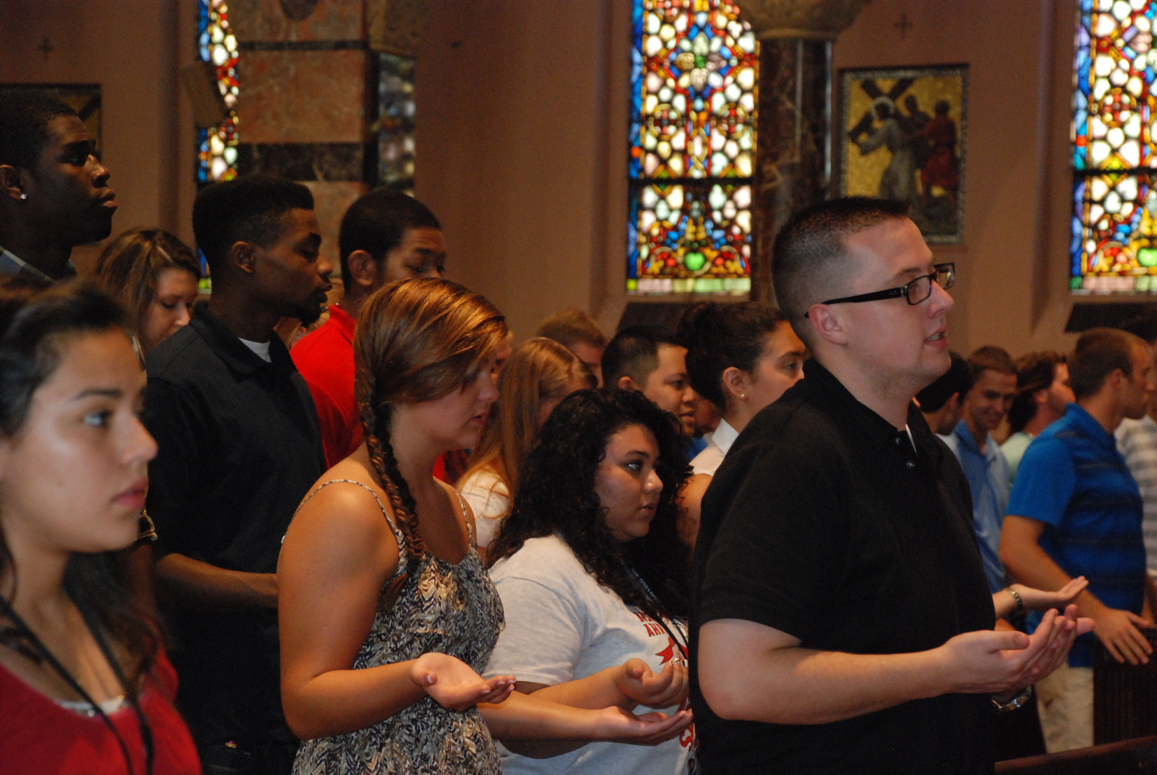Students, faculty, staff and administrators gathered today at St. Aedan’s: The Saint Peter’s University Church to worship together at the Mass of the Holy Spirit, which traditionally marks the beginning of the academic year. The Mass involved members of the campus community standing to affirm their commitment to love, generosity and social justice.
