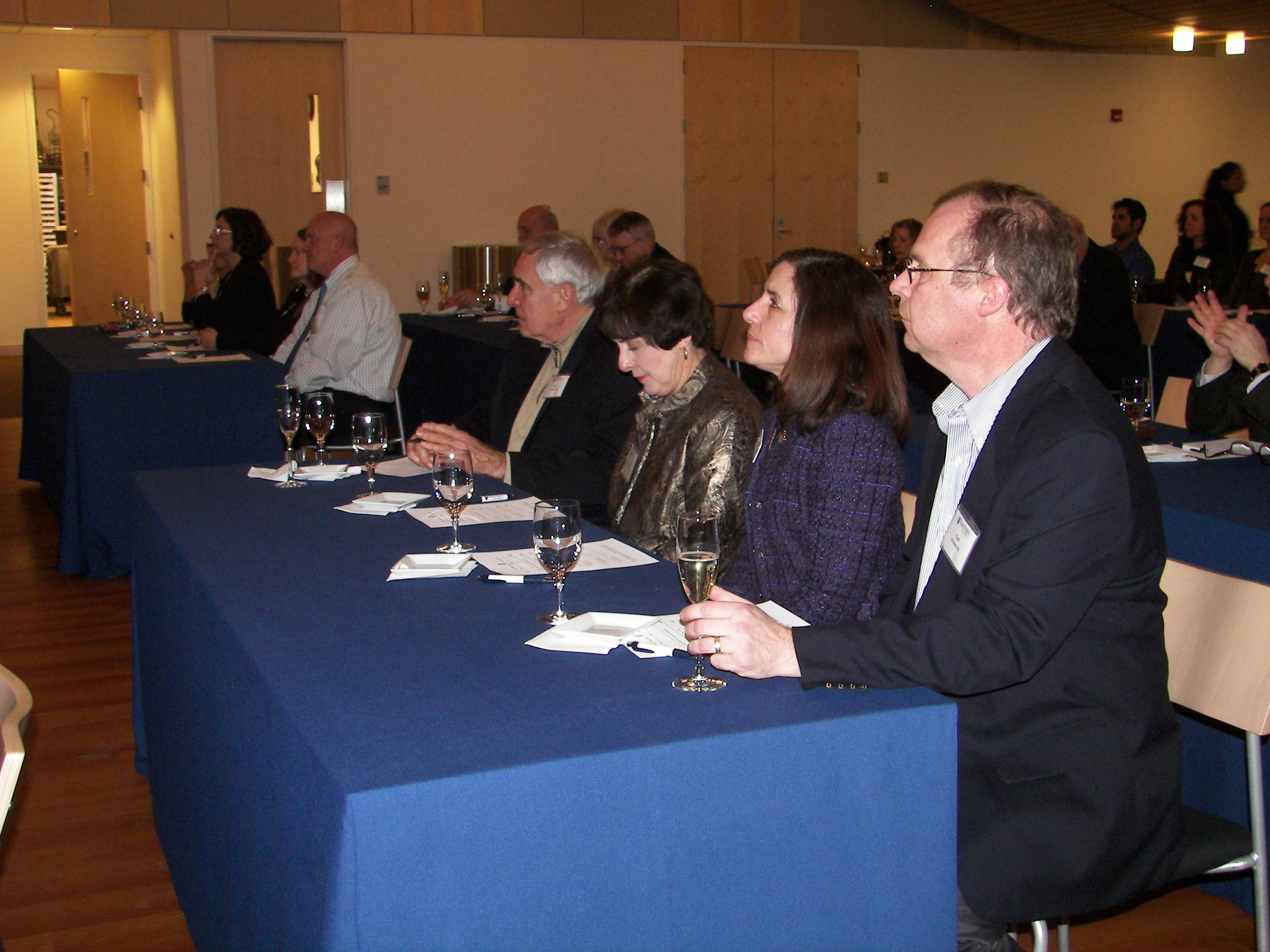 Alumni and friends gathered in The Duncan Family Sky Room at the Mac Mahon Student Center for an insightful and informative presentation by Sommelier Ron Bartels, followed by wine tastings paired with cheeses and hors d’oeuvres on February 12. Guests enjoyed sampling seven varieties of high quality wines of the world, including old world vs. new world wines.
