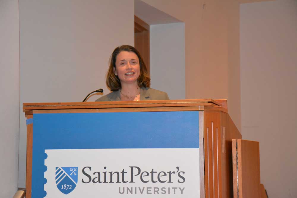 Mendel2How does a theory go from being a simple idea to an actual method used to treat a condition? Students had the opportunity to learn firsthand from Nancy Chiaravalloti, Ph.D., who was invited to Saint Peter’s to deliver the 63rd Annual Mendel Lecture at the University on Thursday, April 24. Chiaravalloti serves as the director of neuropsychology and neuroscience and of TBI research at Kessler Foundation. She also is an associate professor in the Department of Physical Medicine and Rehabilitation at Rutgers University NJ Medical School and is a licensed psychologist in New York and New Jersey.