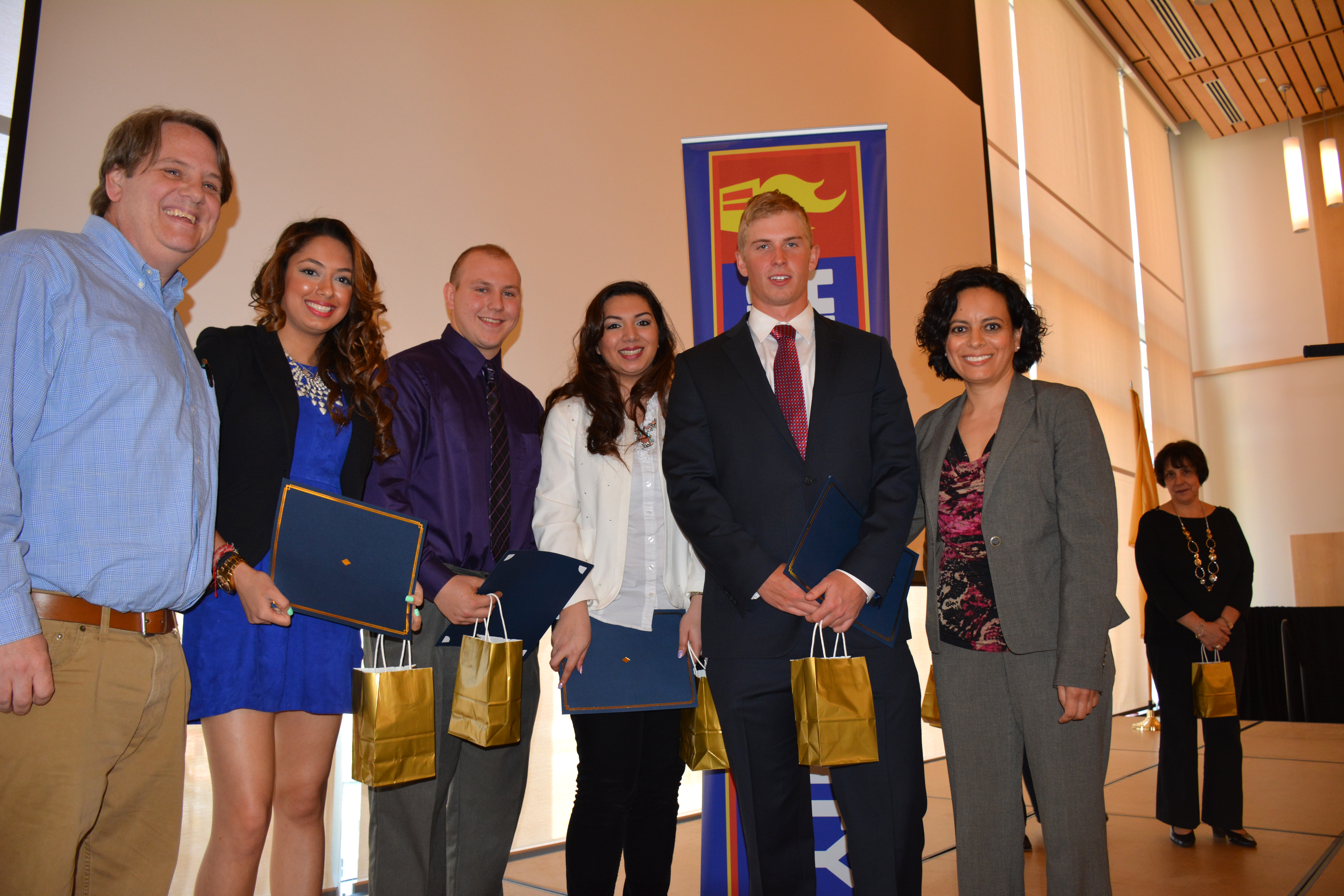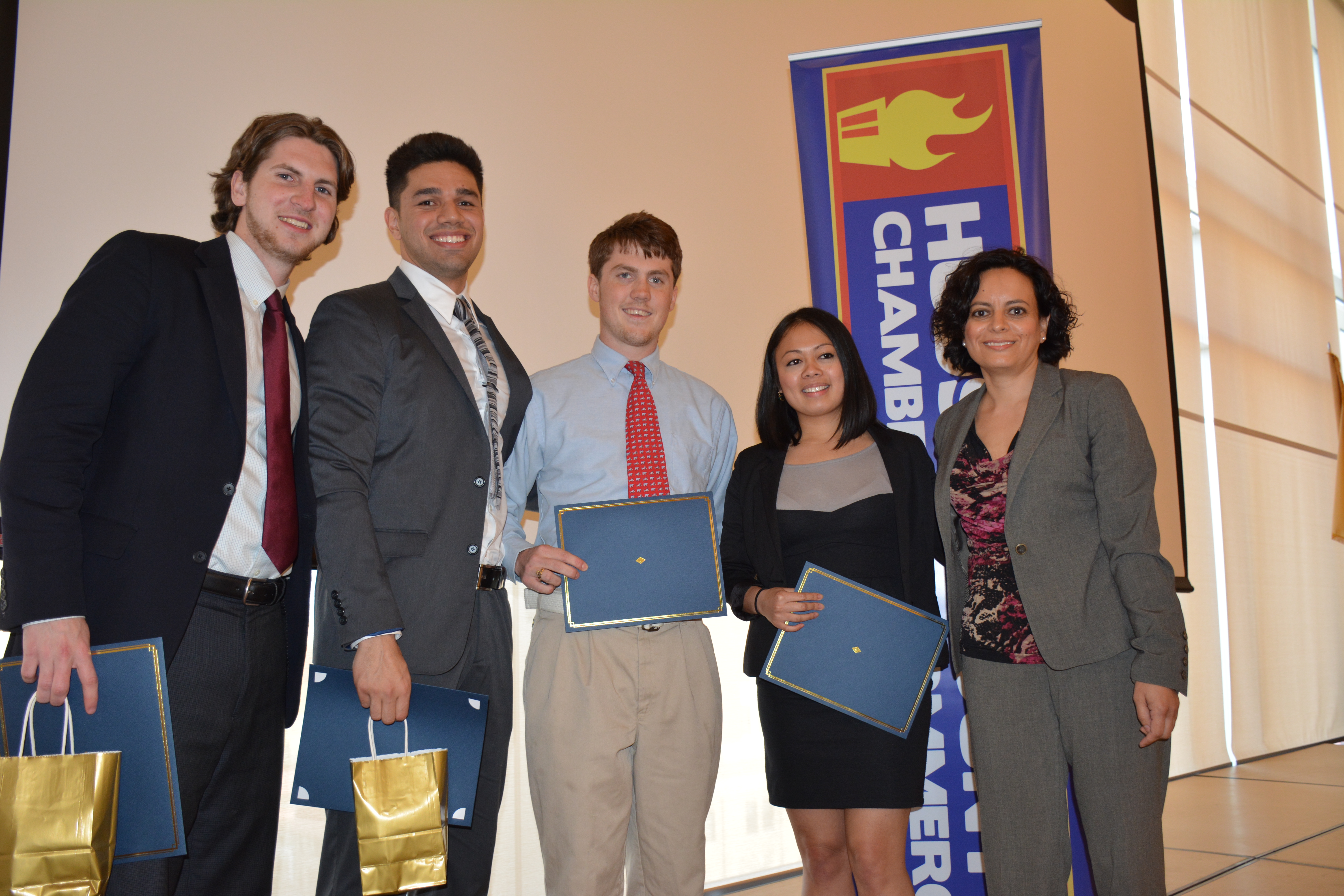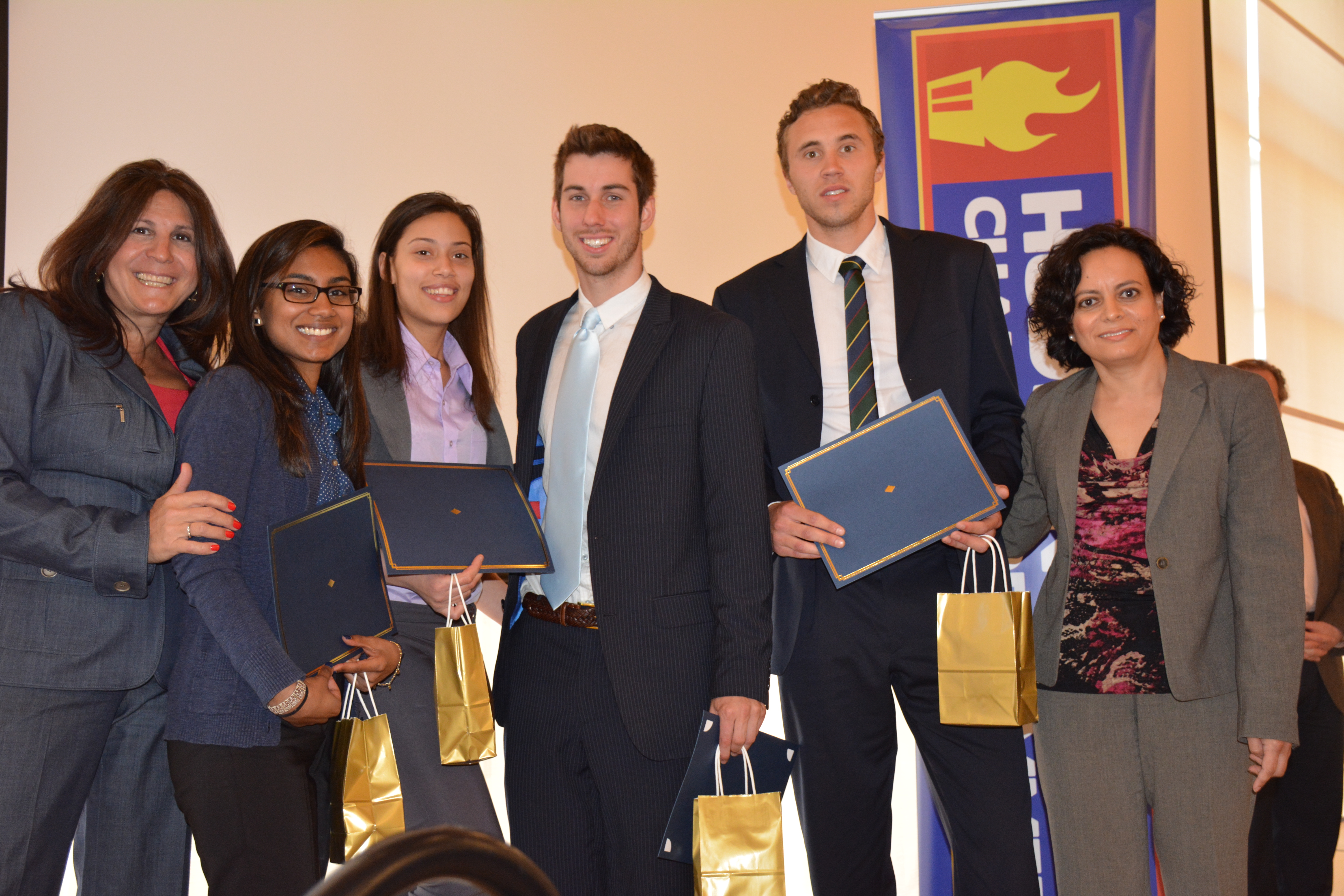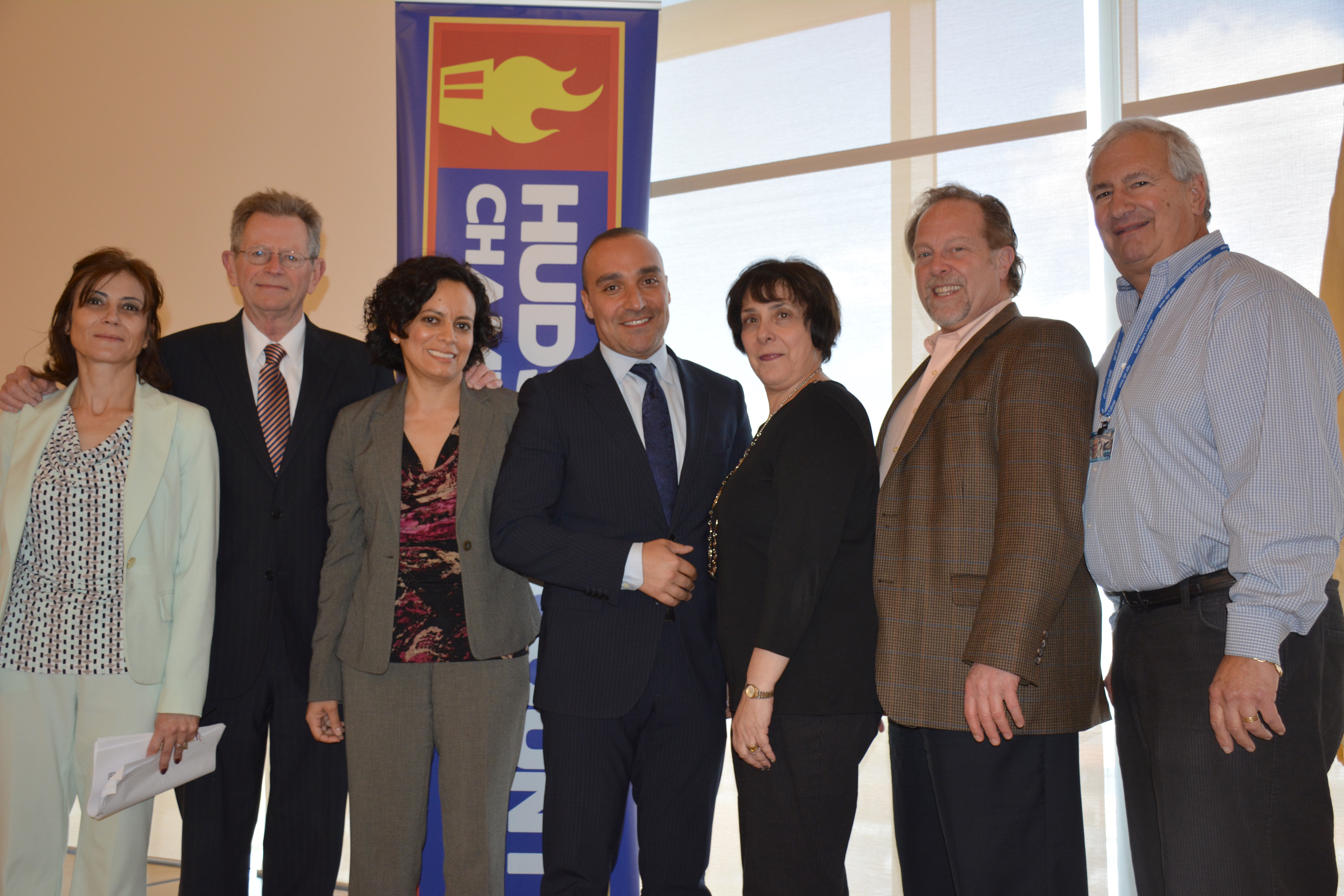 On May 6 in The Duncan Family Sky Room at the Mac Mahon Student Center, the Hudson County Chamber of Commerce and Saint Peter’s University hosted the finals of a business consulting competition for a new collaborative program called the Town and Gown Project, which launched this spring at the University. During the semester, students enrolled in a senior business seminar served as marketing consultants to small business members of the Chamber. The major goal of this initiative was to provide consulting experience to senior business students while also providing marketing insights to small business owners.