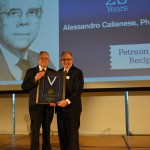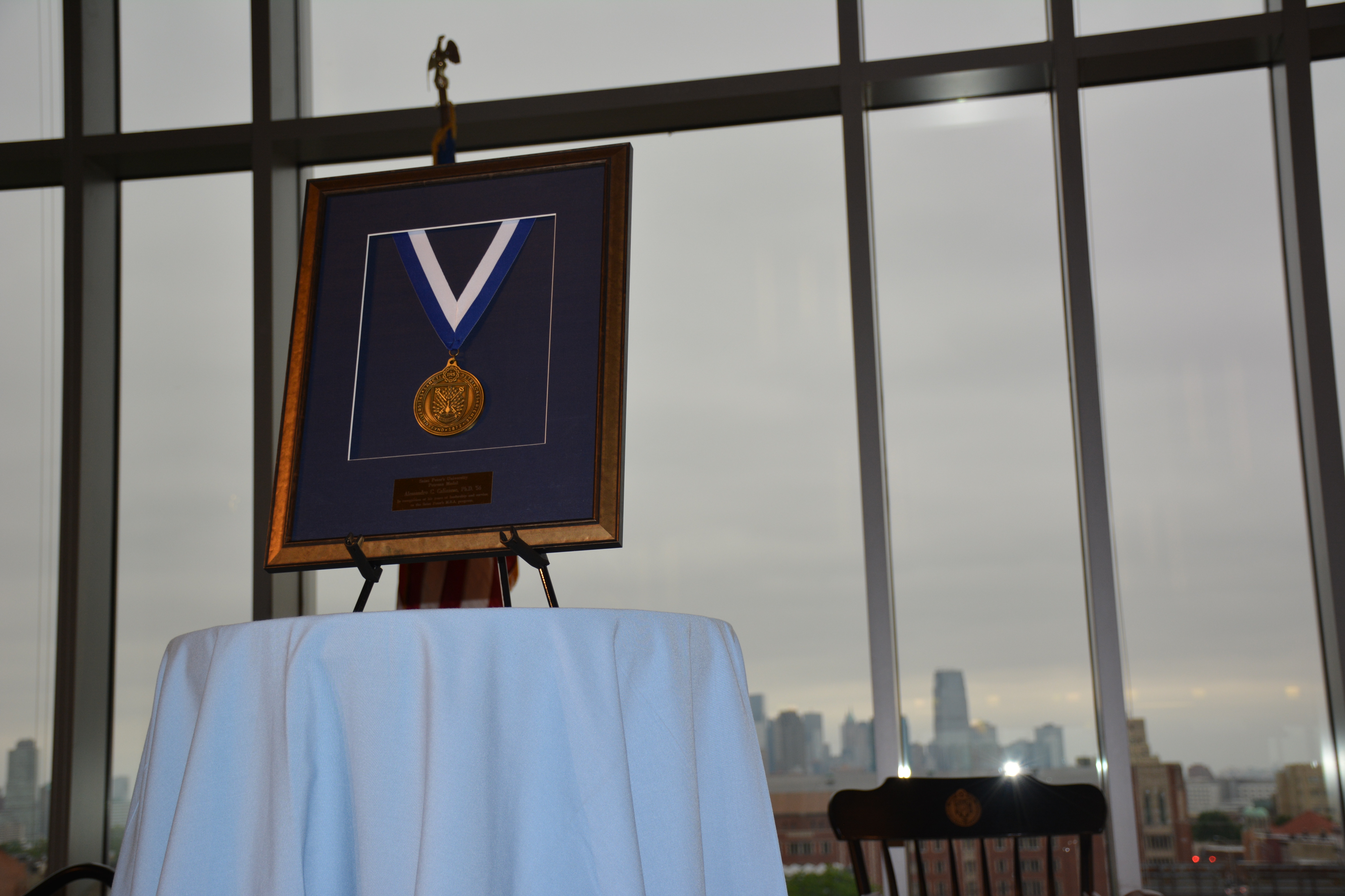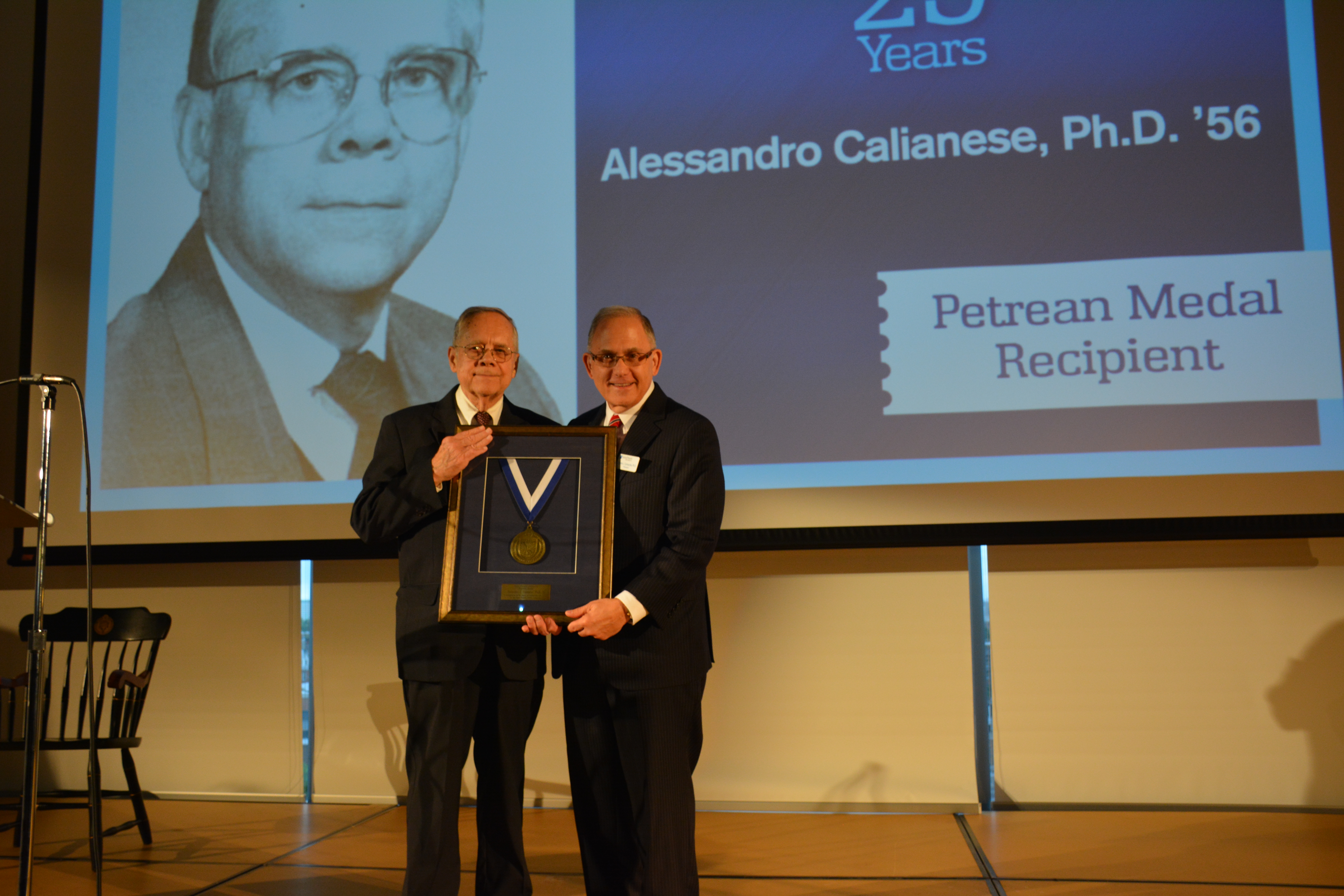 The celebration continued with a special honor for the man who is credited with founding the MBA program, Alessandro Calianese, Ph.D. ’56. Dr. Calianese served as a member of the Saint Peter’s community for more than five decades and is credited with founding the MBA and computer science programs at the University. He was presented with a Petrean Medal for his extraordinary service and accomplishments for his work that helped to make Saint Peter’s what it is today. The Petrean Medal recognizes individuals and groups for their dedication and service to others. Calianese took the stage to share the story behind how the MBA program developed from a simple idea to a successful degree program.