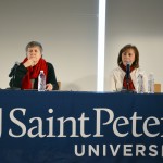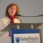 Valente welcomed students and expressed gratitude for the professors who impacted her during her time at Saint Peter’s. These individuals included James C. G. Conniff, a former English professor who passed last year, and Rev. Robert E. Kennedy, S.J., a former theology professor, who was present at the event.