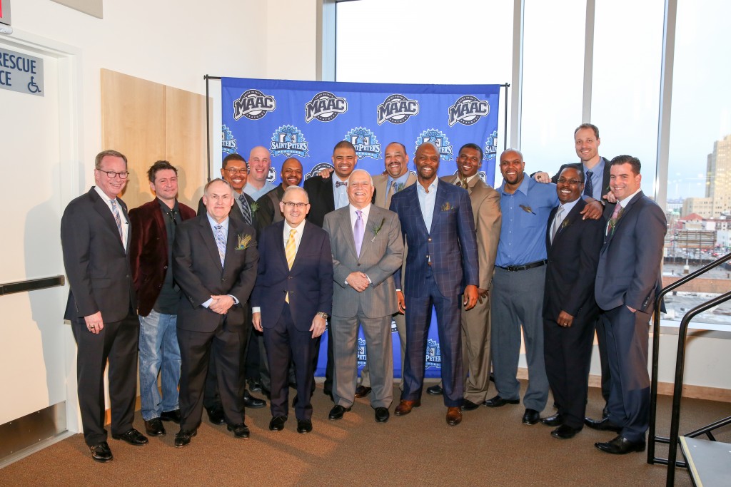 The evening of Saturday, March 28 proved to be a night filled with gratitude at Saint Peter’s University. Members of the University community, alumni, family and friends filled The Duncan Family Sky Room to celebrate the induction of the 2014 Saint Peter’s University Athletics Hall of Fame Class. The inductees all took the stage to thank their parents, spouses, friends and relatives who helped them along the way, but they also took a moment to thank their Saint Peter’s family.