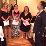 Attendees enjoyed five-course dinner and wine pairing in addition to a silent auction. Folks were then treated to a rendition of “Hallelujah” by Director of Liturgical Music Joseph Legaspi and three members of Schola: Katherine Angeles ’17, Mary Zeoli ’15 and Amanda DiMauro ’15. Mike Milano ’74, ’91 and Carmel Galasso ’79 ended the night with the tradition of singing “Io Pavo,” the University’s fight song.