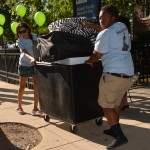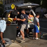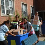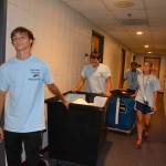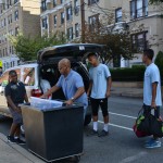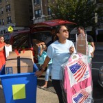 It wDSC_0933as just after 9:00 a.m. when cars, SUVs and trucks began to line up on the side of Glenwood Avenue on Saturday, August 22. Trunks began to unlock and open, revealing cases and cardboard boxes filled with clothes, notebooks, fans and array of other items. The Peacock Flock, a group of student volunteers, could be seen helping families and friends unload vehicles and carting belongings to either Millennium or Whelan Hall.