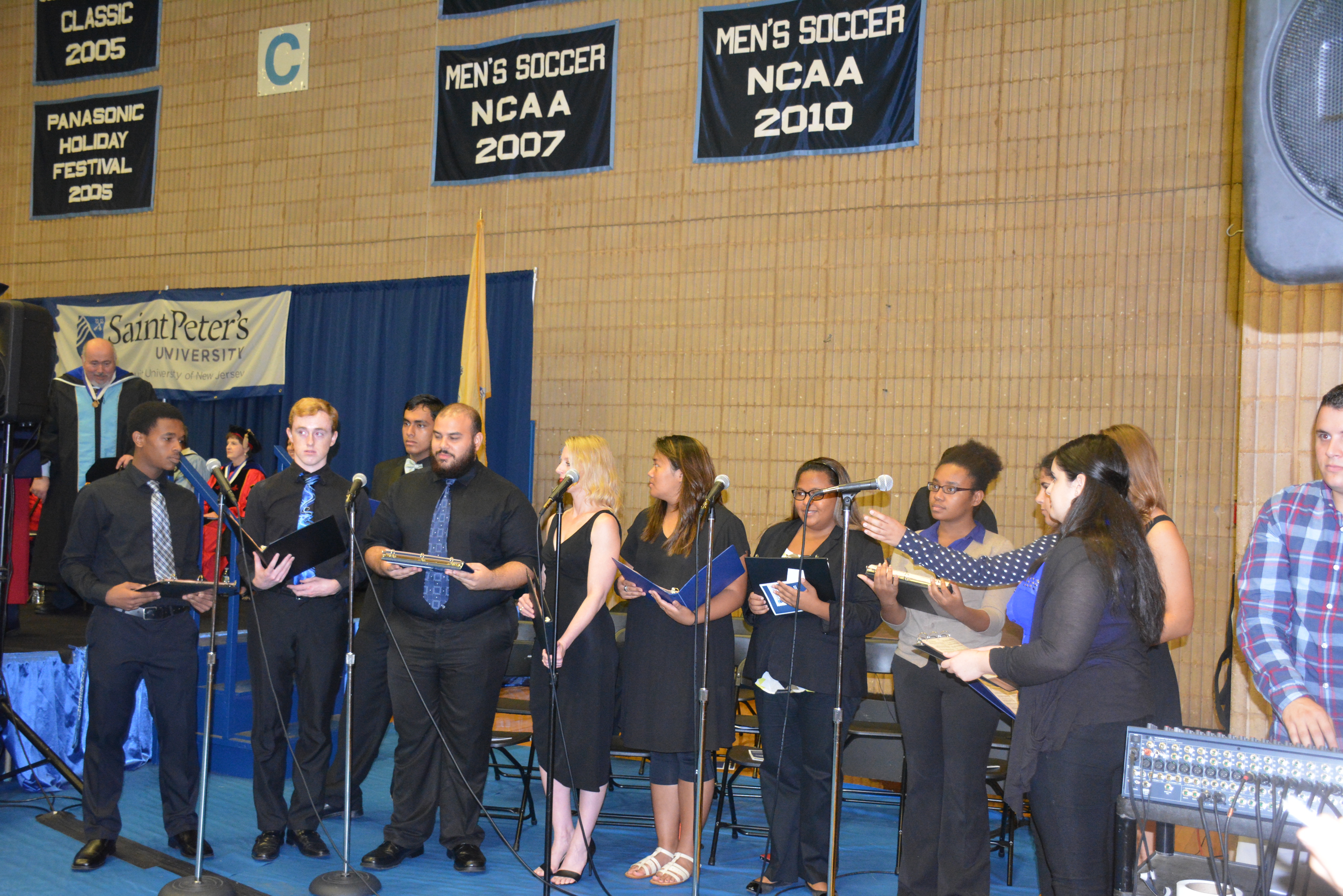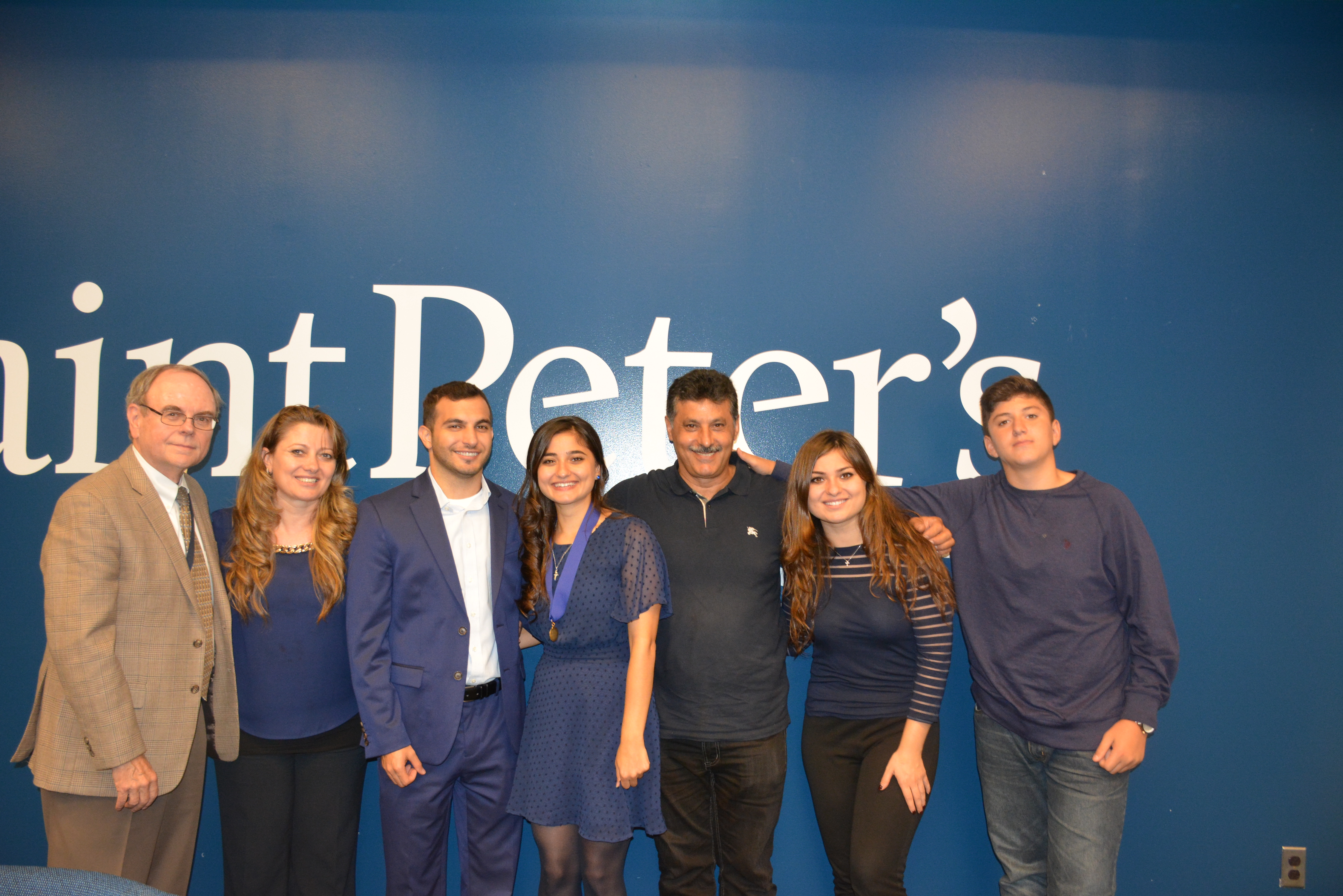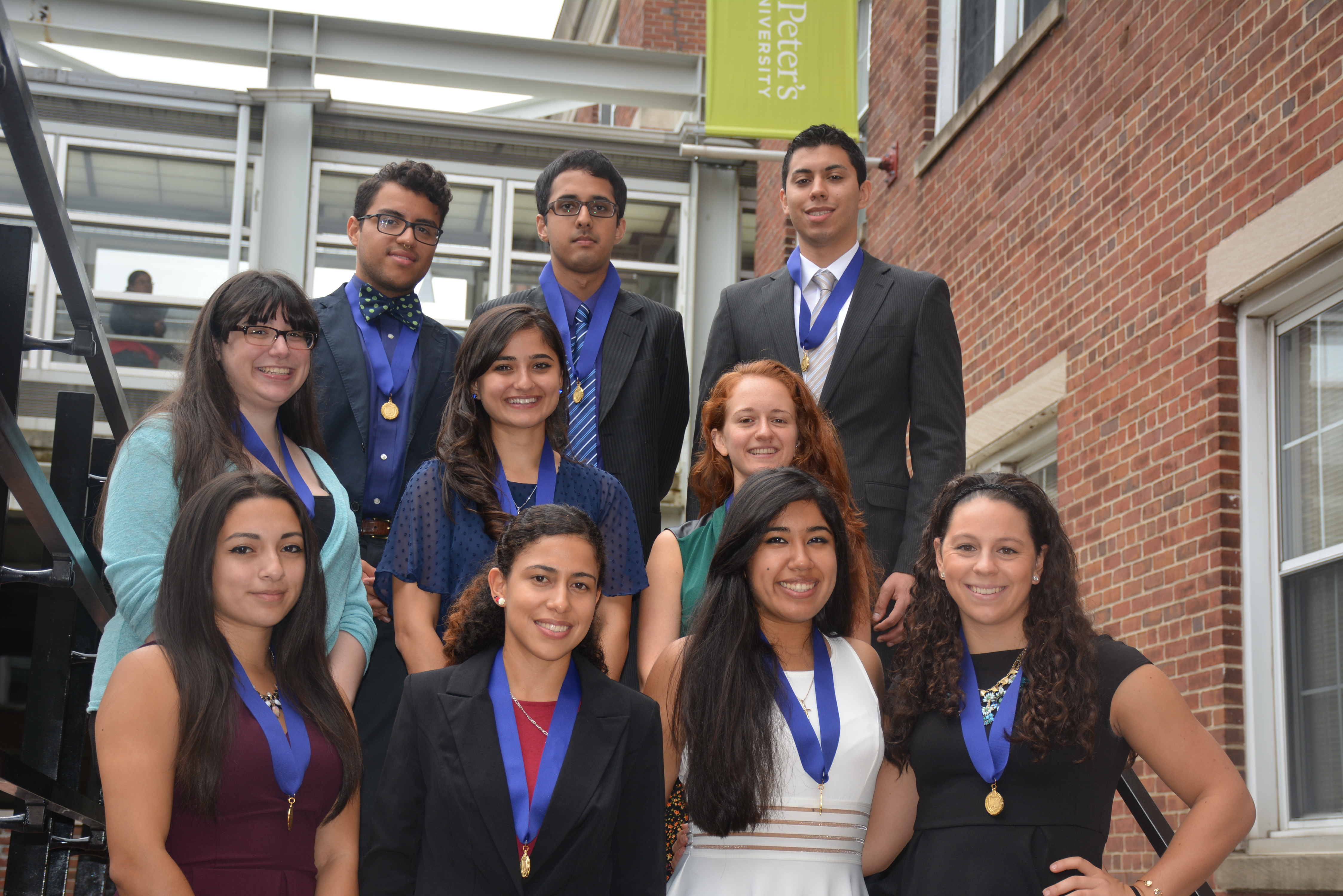 The annual Michaelmas Convocation follows the medieval tradition of convening the faculty and students to start the term and is celebrated in the honor of the feast of the archangels Michael, Gabriel and Raphael. Each year, 10 senior students are inducted into the oldest scholarship society at Saint Peter’s, the Most Noble Order of the Peacock (MNOP), for attaining the highest scholastic average in all courses throughout their first three years at the University. The students inducted into this year’s MNOP society include: Mary Gerraah, Christian R. Ugaz, Genesis Balarezo, Lauren Squillante, Sarah B. Surowitz, Suman Bhattarai, Jennifer E. Mejia, Daniel A. Centeno, Christina M. Petrelis and Natalie R. Ramirez.