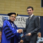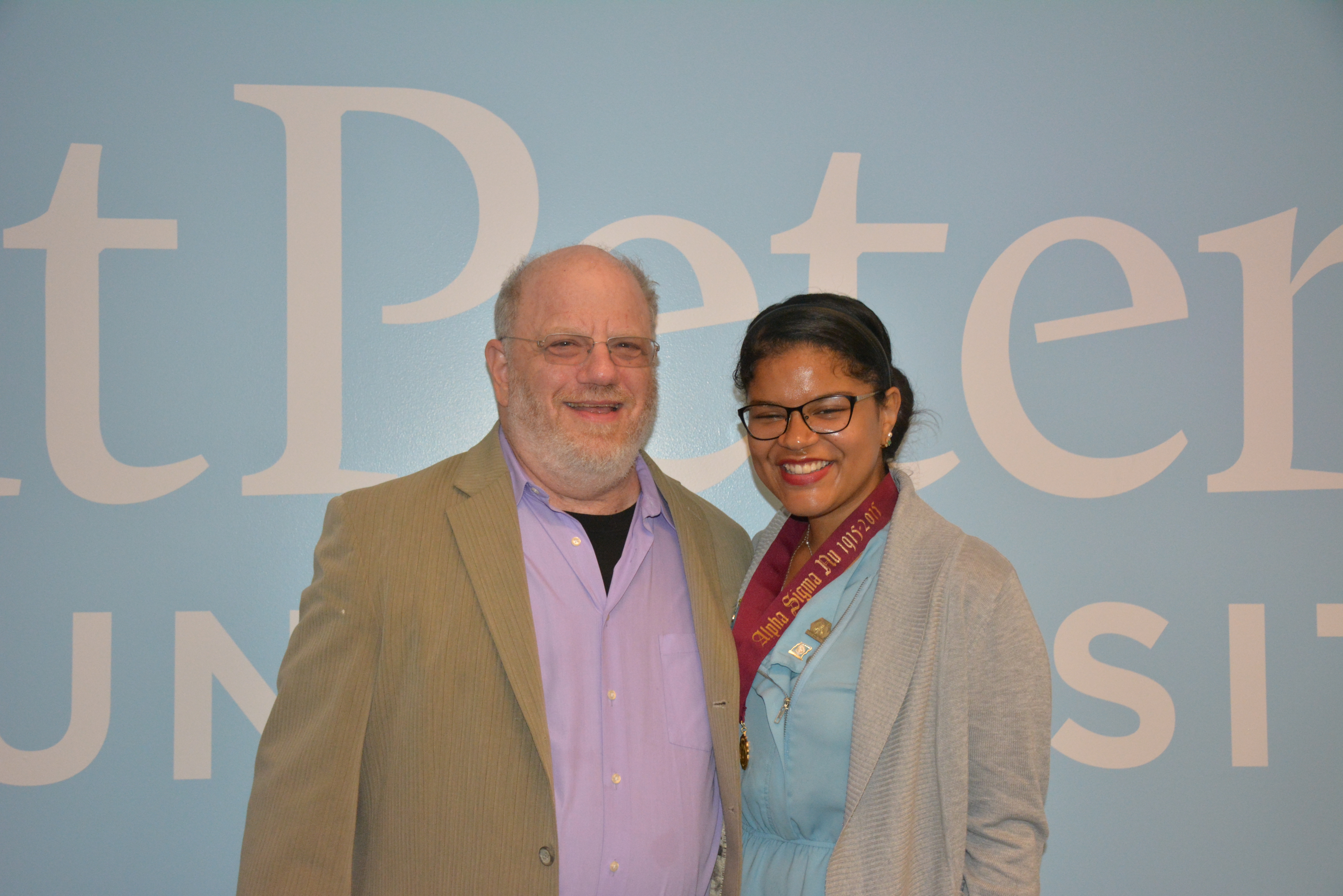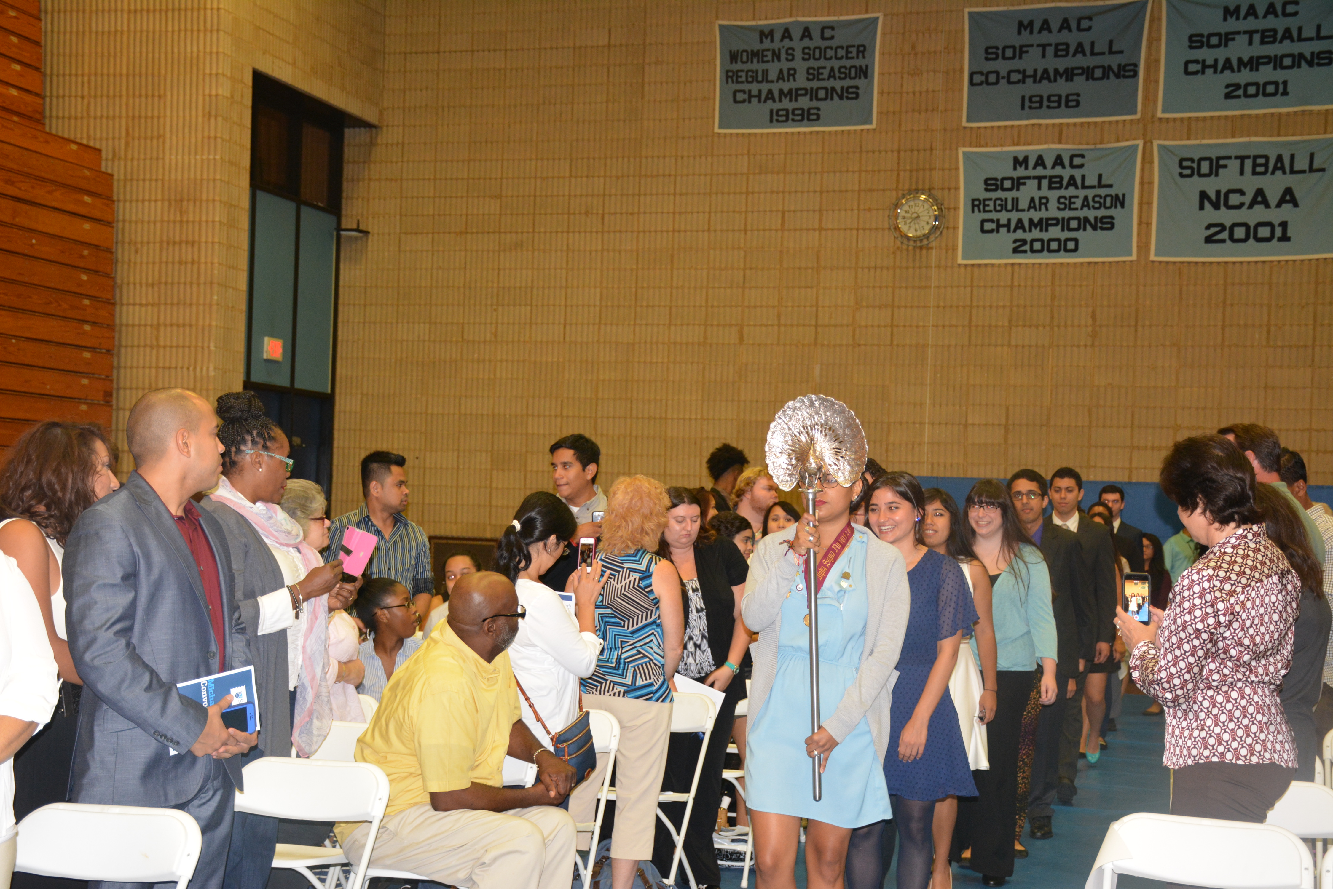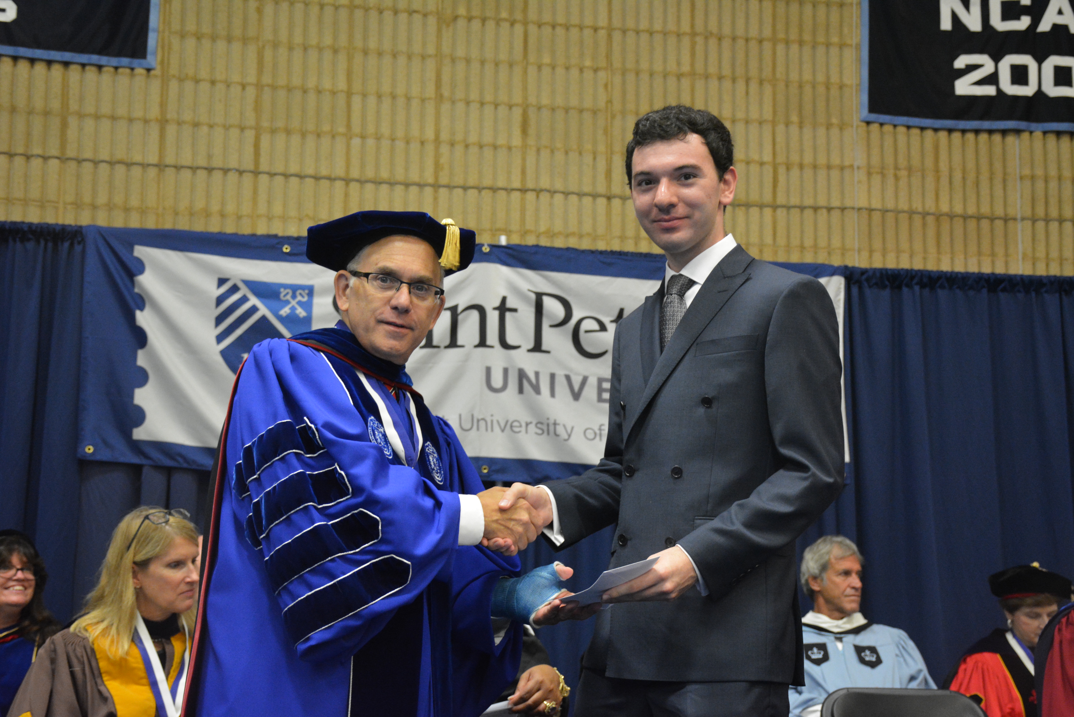 The annual Michaelmas Convocation follows the medieval tradition of convening the faculty and students to start the term and is celebrated in the honor of the feast of the archangels Michael, Gabriel and Raphael. Each year, 10 senior students are inducted into the oldest scholarship society at Saint Peter’s, the Most Noble Order of the Peacock (MNOP), for attaining the highest scholastic average in all courses throughout their first three years at the University. The students inducted into this year’s MNOP society include: Mary Gerraah, Christian R. Ugaz, Genesis Balarezo, Lauren Squillante, Sarah B. Surowitz, Suman Bhattarai, Jennifer E. Mejia, Daniel A. Centeno, Christina M. Petrelis and Natalie R. Ramirez.