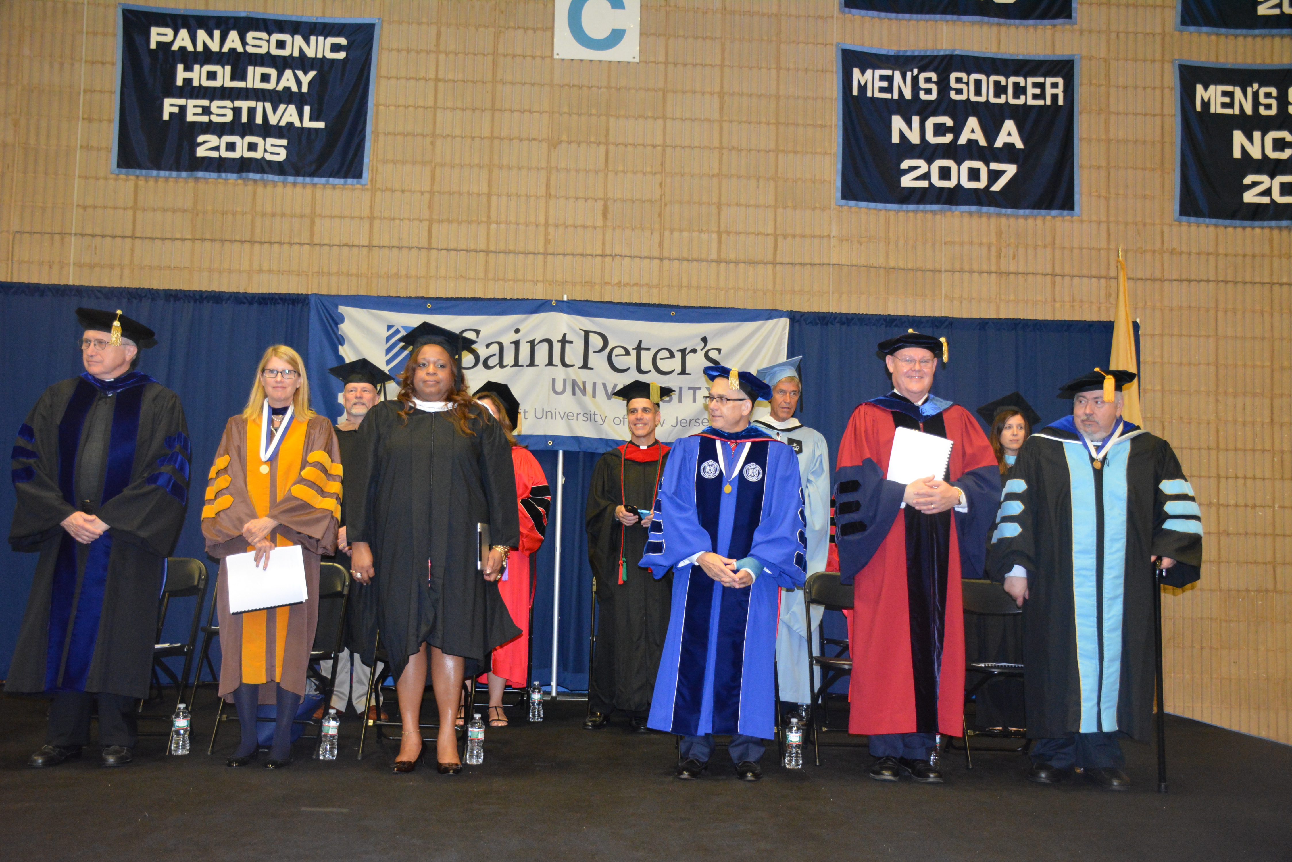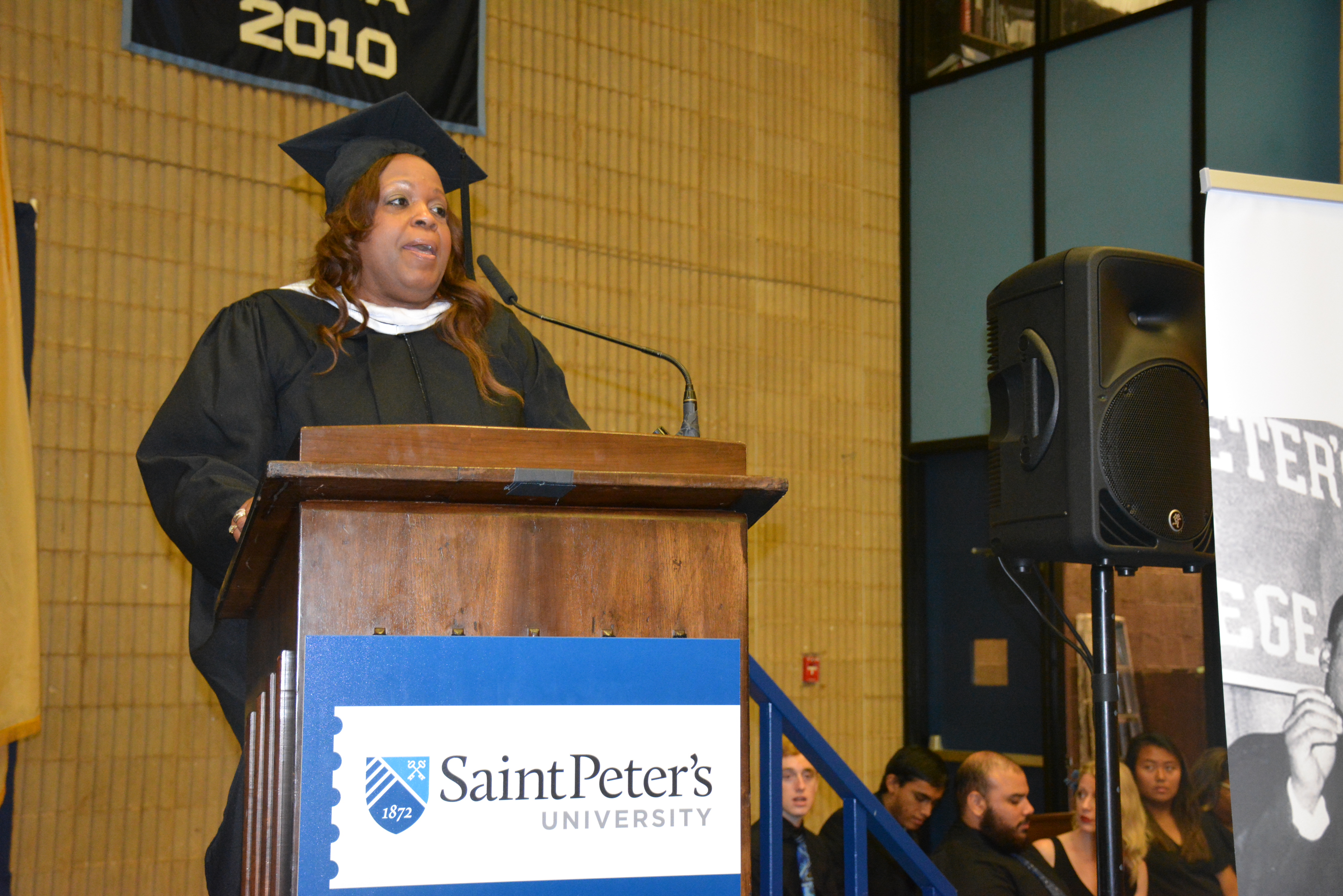 Pamela T. Miller, Esq. ’77, president and CEO of Summit Global Strategies, Ltd., provided the keynote address for the 2015 Saint Peter’s University Michaelmas Convocation. The University community gathered at The Victor R. Yanitelli, S.J. Recreational Life Center on Wednesday, September 30 for the ceremony, which marked the 50th anniversary of the Michaelmas speech Dr. Martin Luther King, H ’65 delivered during his historic visit to Saint Peter’s.