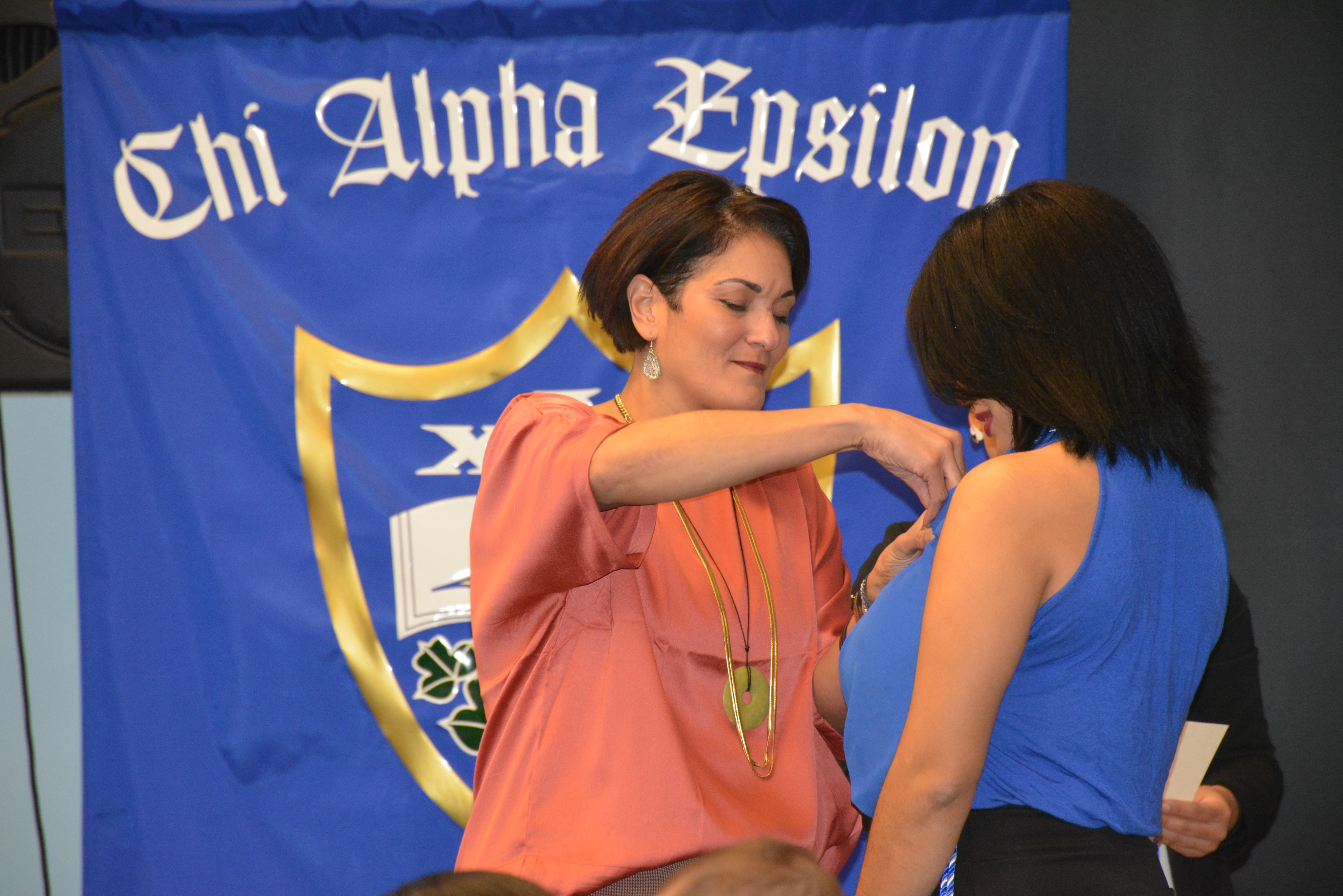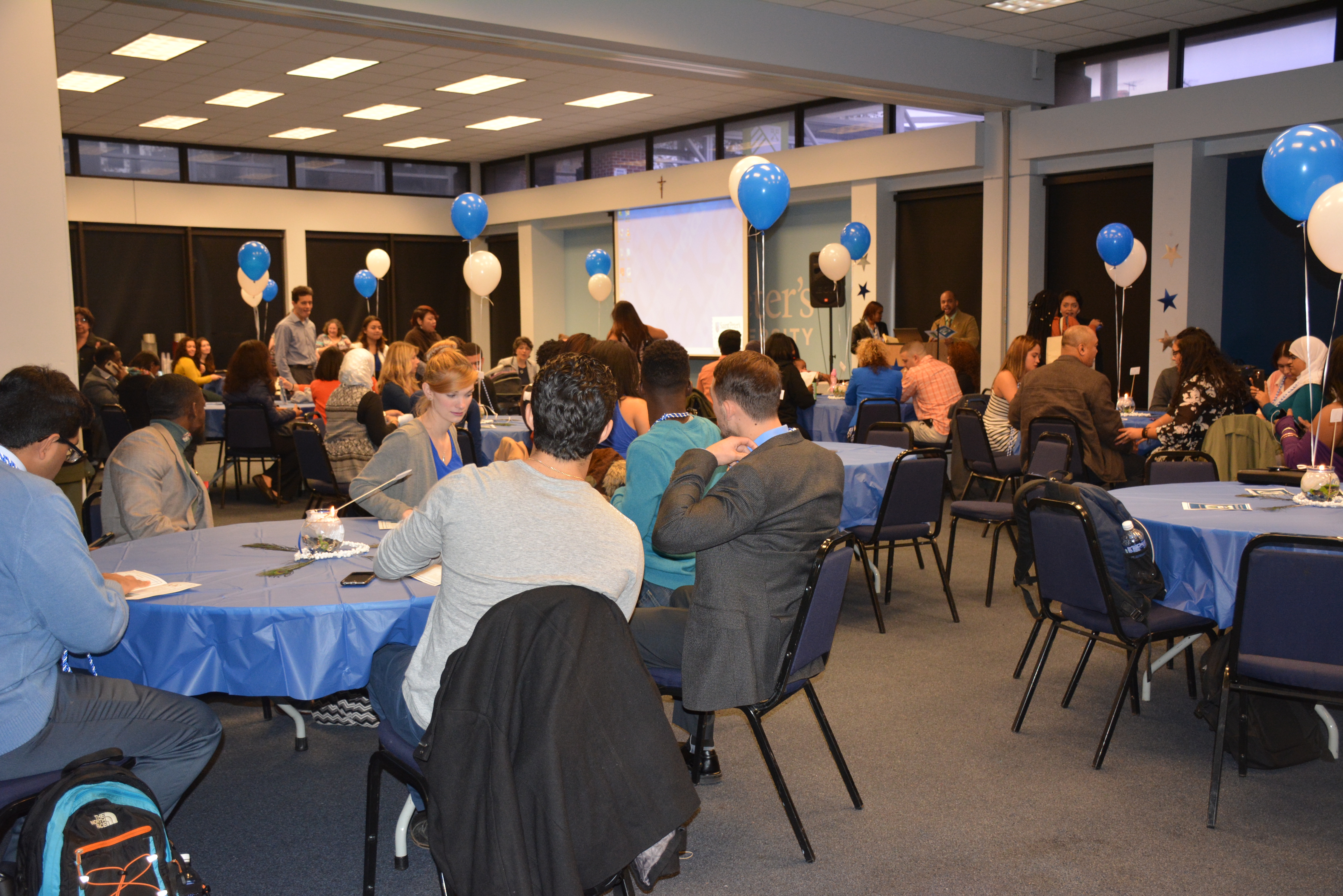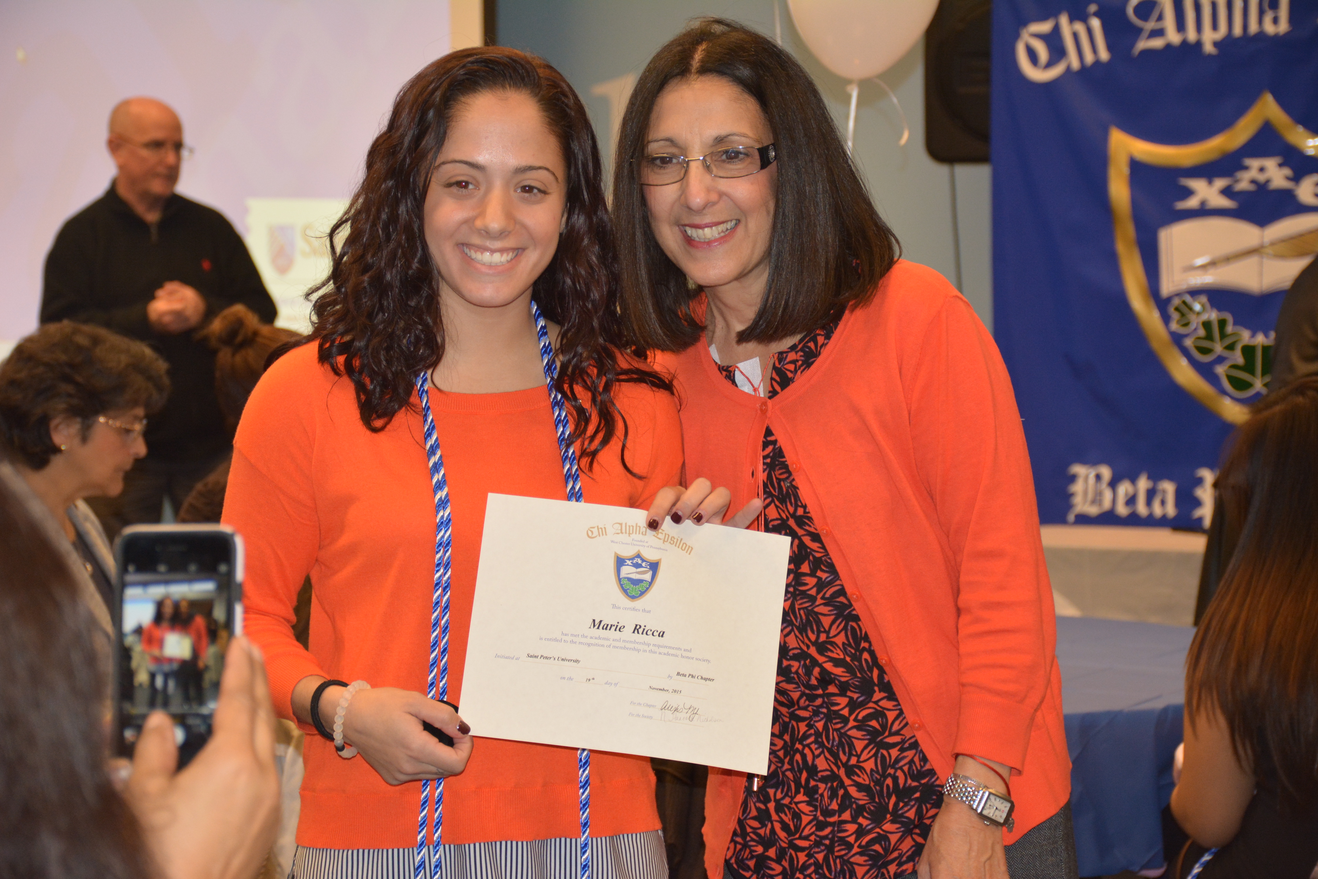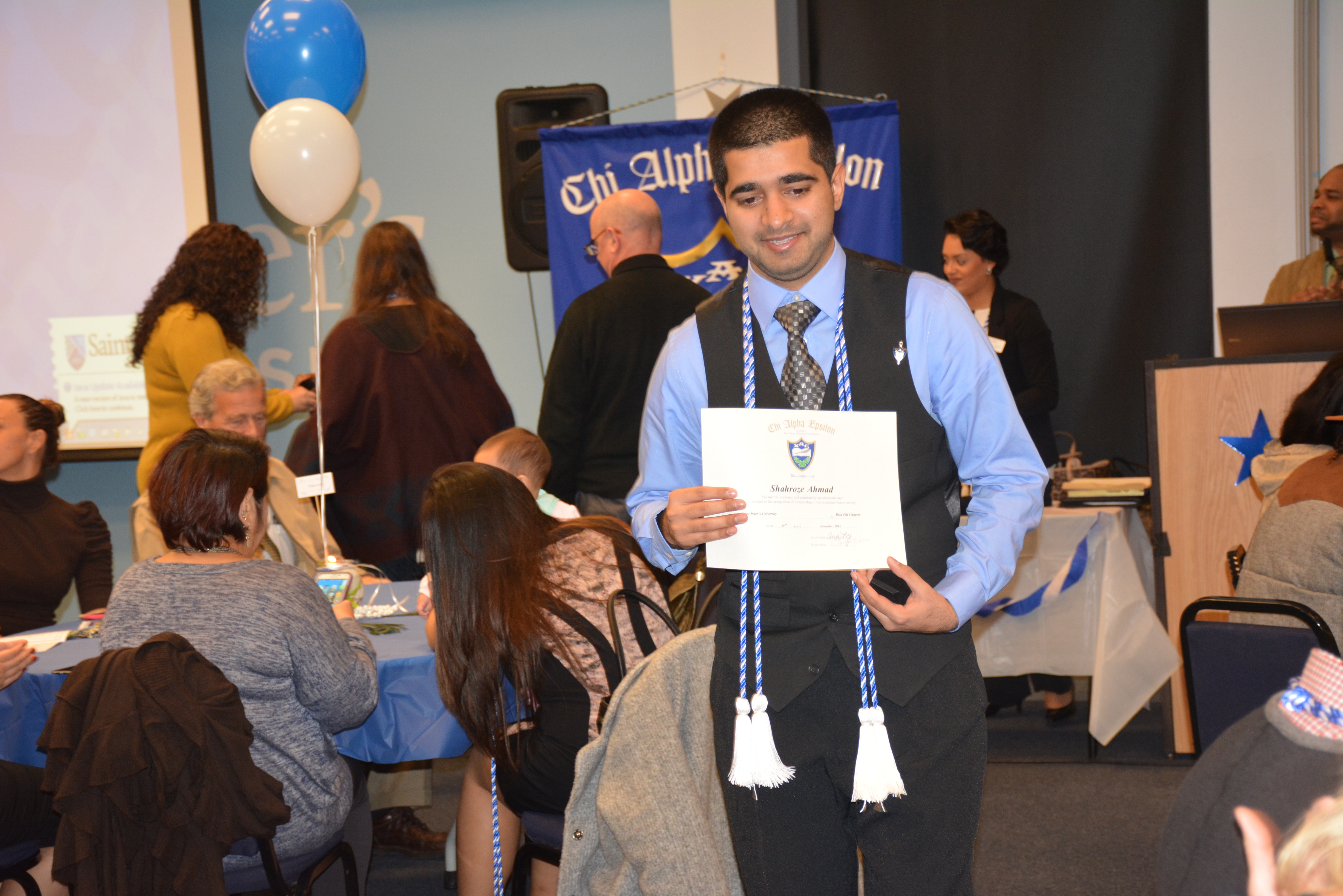 More than 40 students at Saint Peter’s University were recently inducted into the Chi Alpha Epsilon National Honor Society.On Thursday, November 19, family, friends and faculty gathered in the McIntyre Conference Center to celebrate the inductees as they were formally pinned and became official members of the Society.