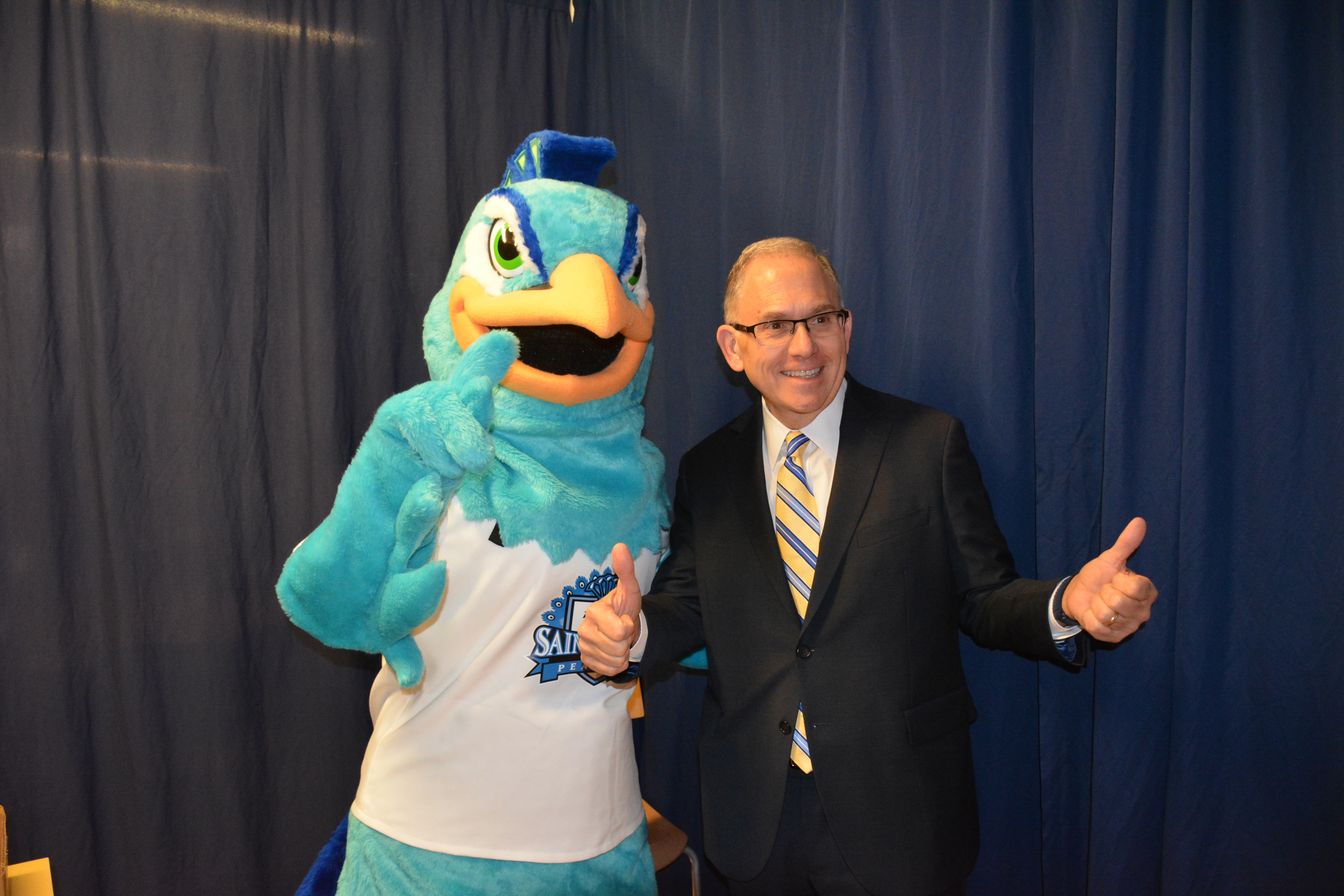During the celebration, students, faculty, staff and administrators, decked out in Peacock gear, enjoyed food, giveaways and music by a DJ. In addition, the University’s new – and fiercer – peacock mascot named Peter made his debut!