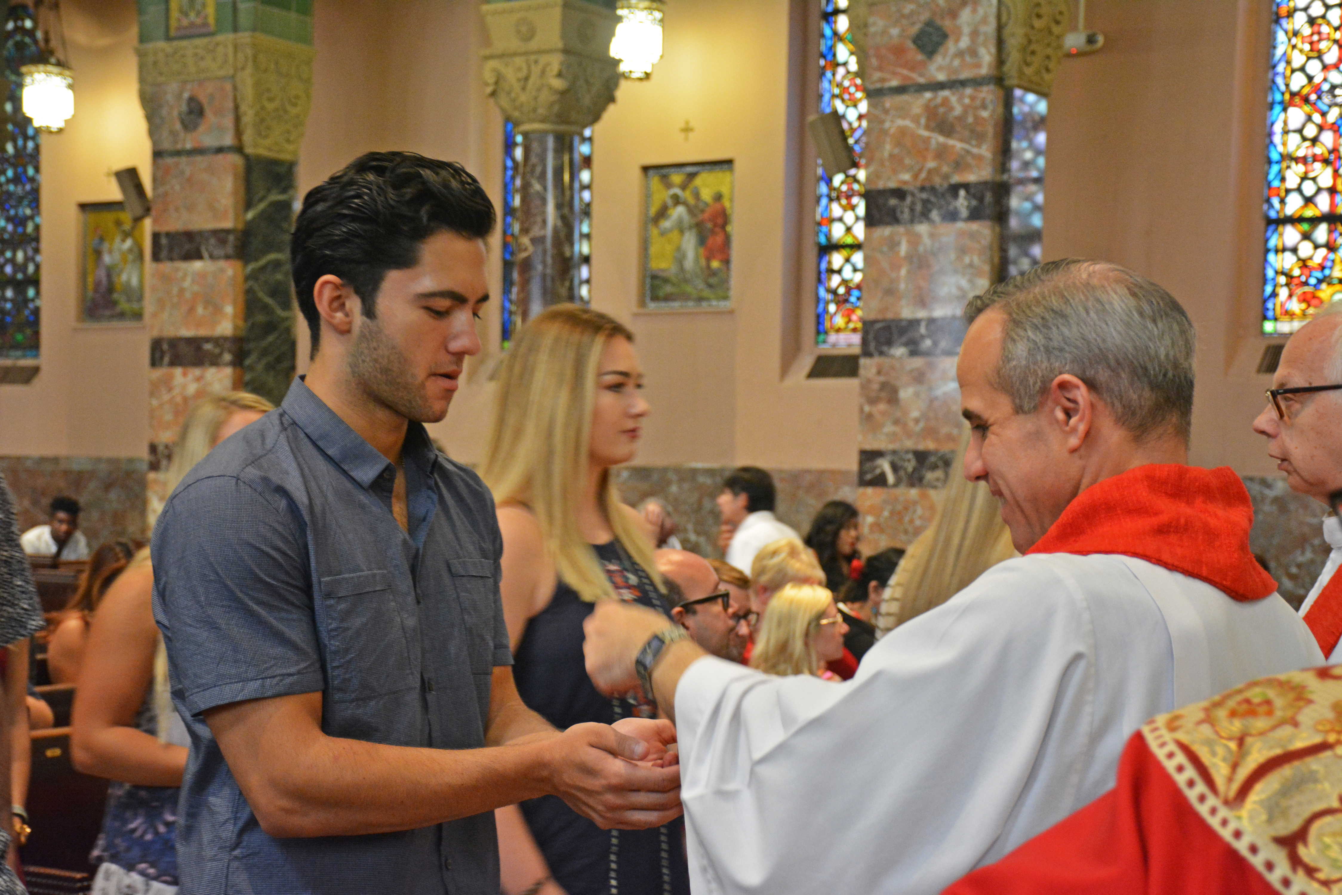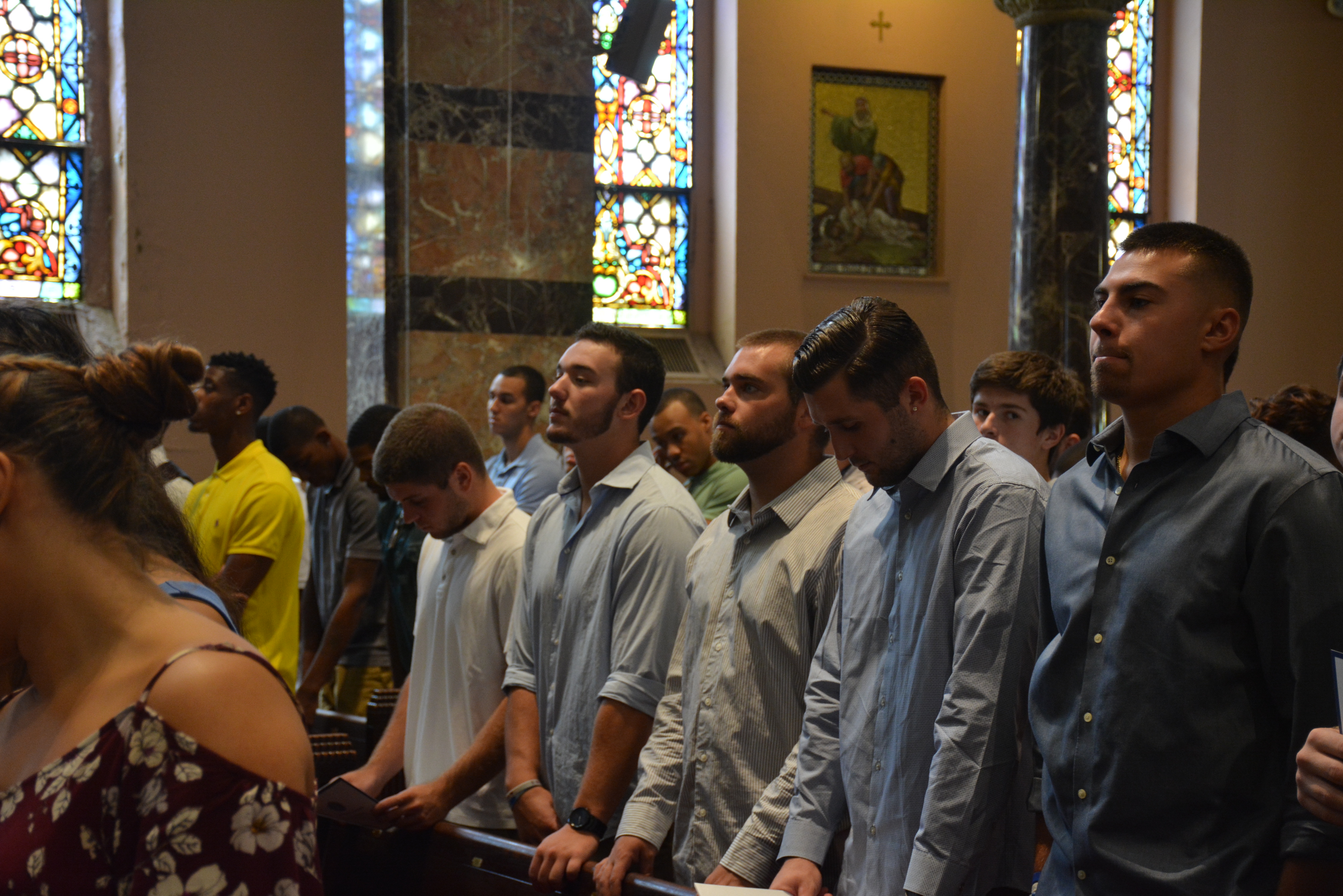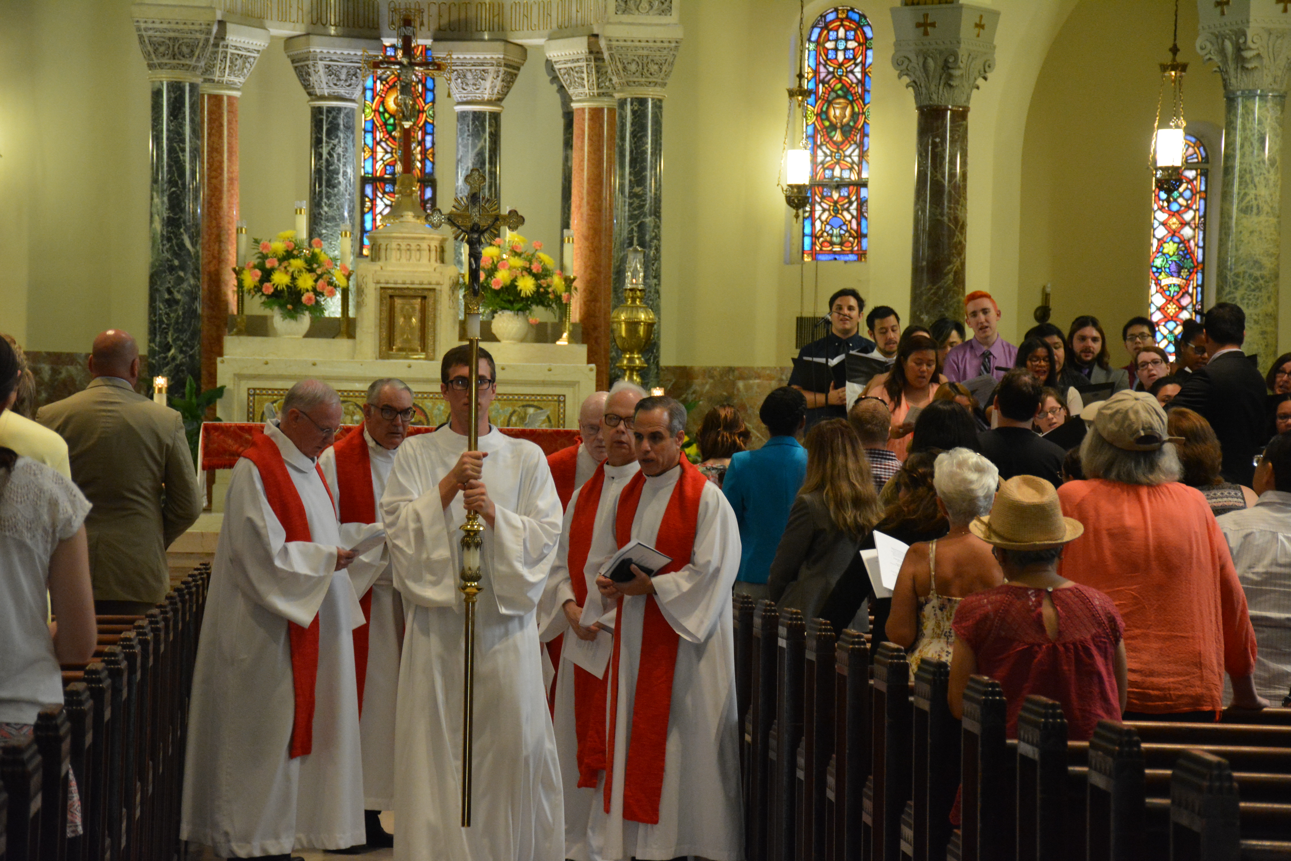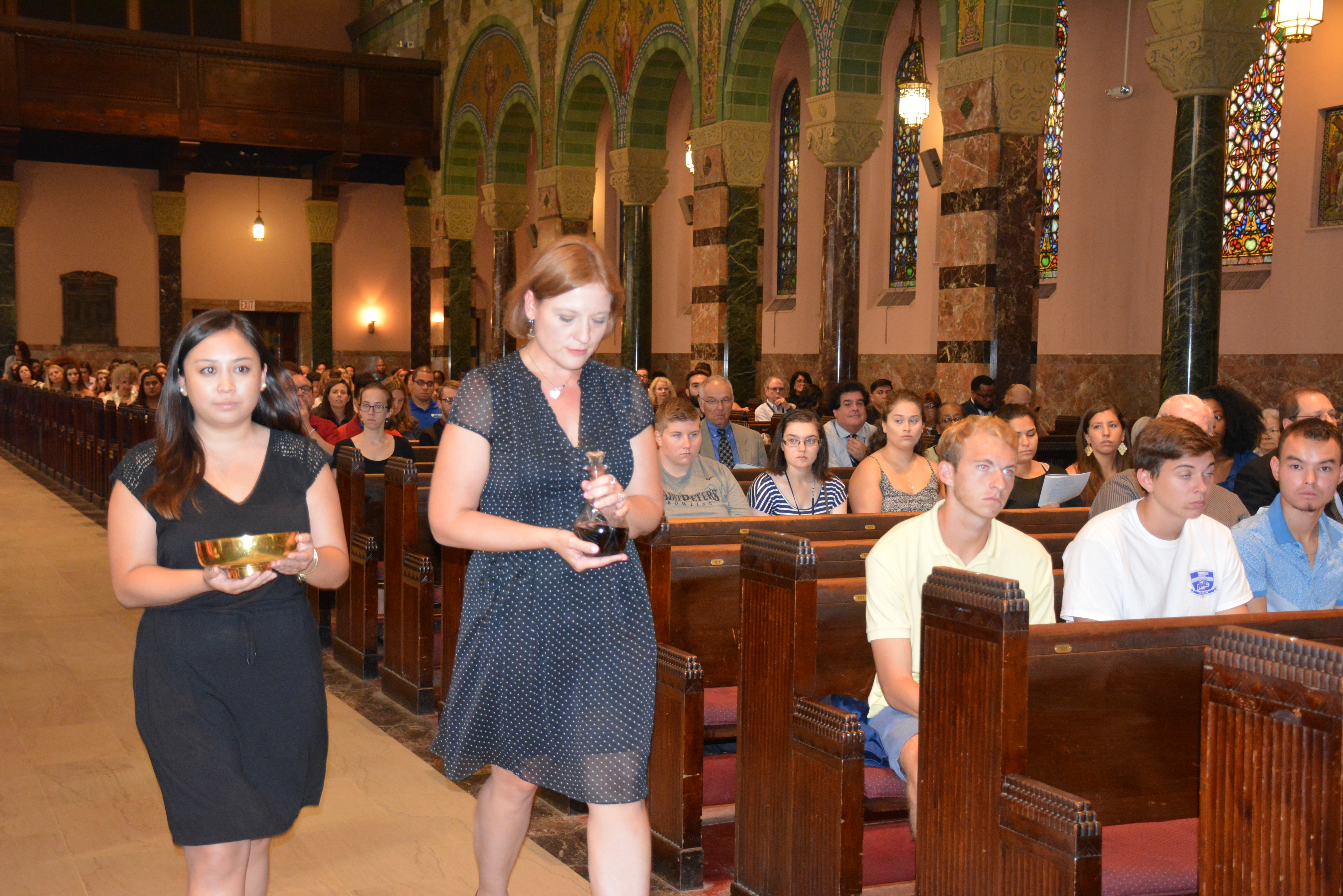 On Wednesday, the Saint Peter’s community came together at St. Aedan’s: The Saint Peter’s University Church to celebrate the Mass of The Holy Spirit on the Exaltation of the Holy Cross. This ceremony, which dates back to the Middle Ages, marks the traditional start of the year at Jesuit schools around the world. The Mass was open to all members of the community. Rev. Claudio Burgaleta, S.J., rector of Saint Peter’s Jesuit community was the presider. Music was provided by Joseph Legaspi, D.M., University music director, The Patriot Brass Ensemble and SCHOLA, the University’s liturgical choir. Students, faculty and staff participated as greeters, lectors and Eucharistic ministers. The Mass was followed by a BBQ in Panepinto Plaza.