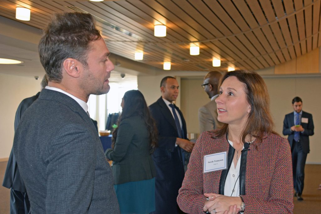 This event was specifically focused on networking skills and etiquette. Sarah Tennyson, owner of Tennyson, LLC, a talent development consultancy, is a behavior expert who led an interactive networking “how-to.” Her tips included practice saying your name clearly, use open-ended questions and go into a networking event with an attitude of reciprocity.