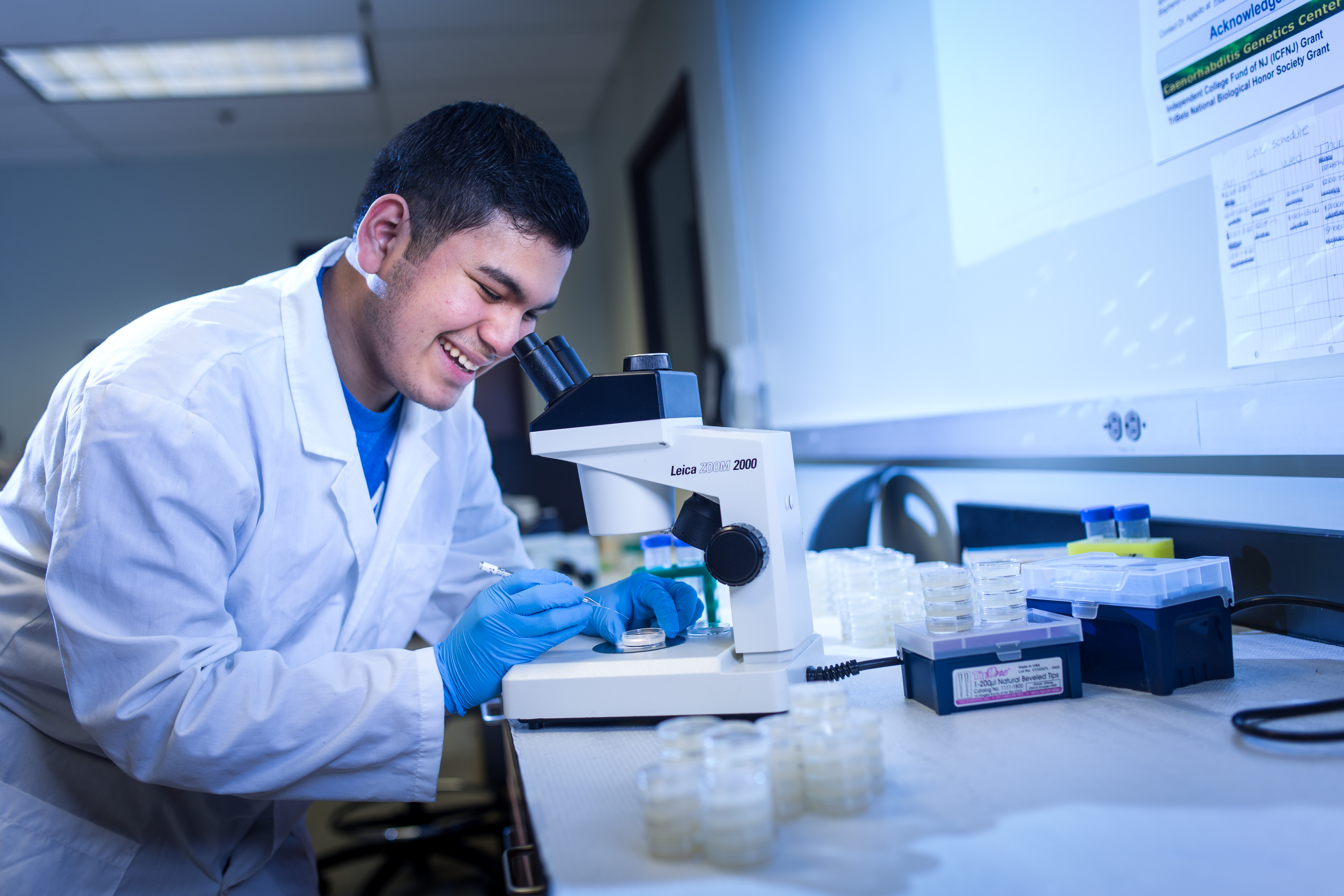 Biology major Luigy Cordova Burgos ’18 entered the University with a plan: medical school. He became interested in laboratory research after attending a presentation on fetal alcohol syndrome given by Assistant Professor of Biology Maria Agapito, Ph.D. Intrigued, Burgos began investigating the developmental effects of ethanol on worms, for which he received a TriBeta National Honor Society Research Scholarship Foundation grant last fall. His research continues this semester, thanks to the SURGE Fellowship. “There’s great satisfaction in sharing information with the greater biology community,” Burgos said. “It’s an opportunity that is going to help me as an individual and hopefully, as a medical school student.”