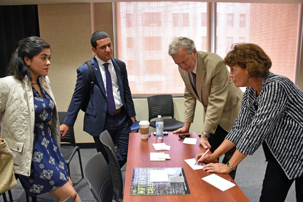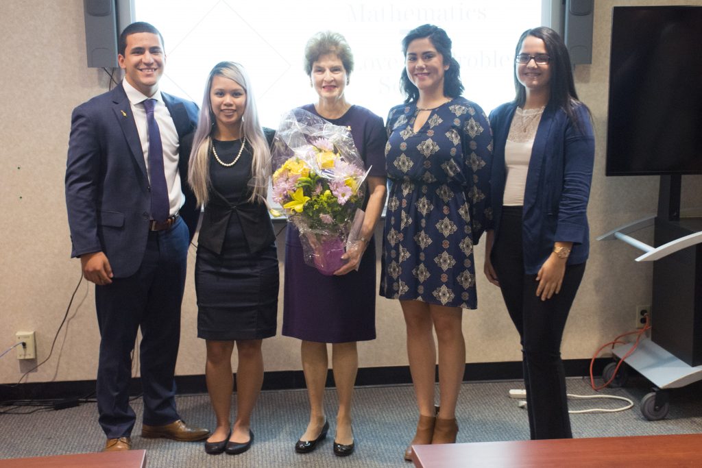 Also, at the event, current members of Pi Mu Epsilon presented Eileen Poiani, Ph.D. H ’17, special assistant to the president, a citation for being one of the founding members of the program and for her dedicated and loyal service to the Saint Peter’s mathematics department and its students for 50 years.