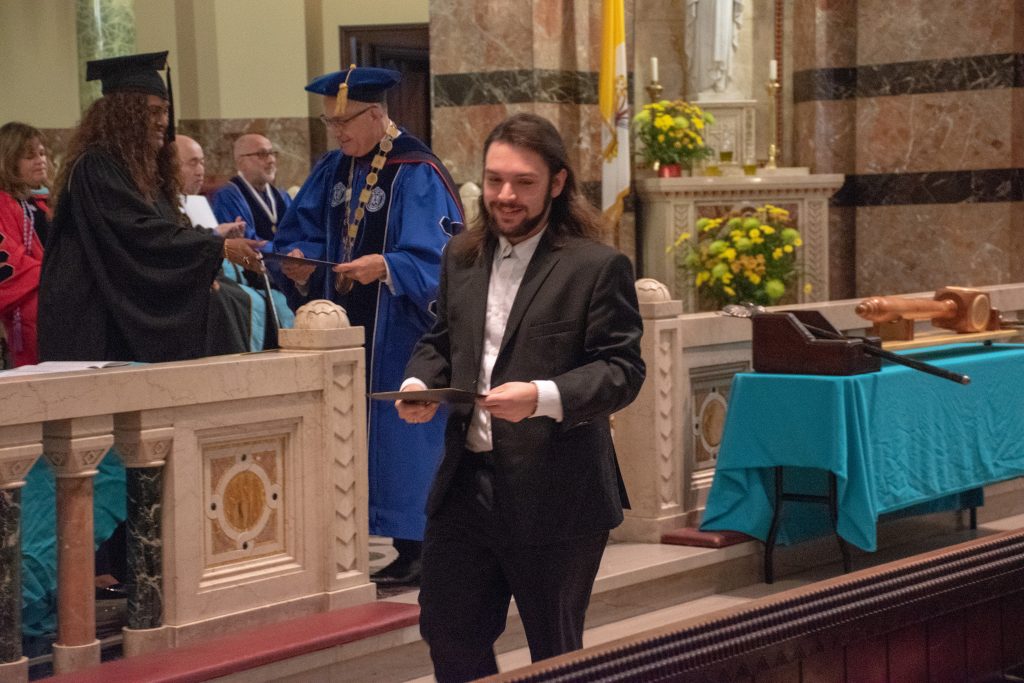 The annual Michaelmas Convocation is a traditional event that celebrates impressive student accomplishments. These students have been working hard since they started at Saint Peter’s to maintain high GPAs and strive for the Magis. The Michaelmas Convocation ceremony follows the medieval tradition of convening the faculty and students to start the term and is celebrated in the honor of the feast of the archangels Michael, Gabriel and Raphael. At this year’s event, New Jersey Senator Sandra B. Cunningham provided the keynote address. Students received achievement awards in all academic areas, including the sciences, arts and business.